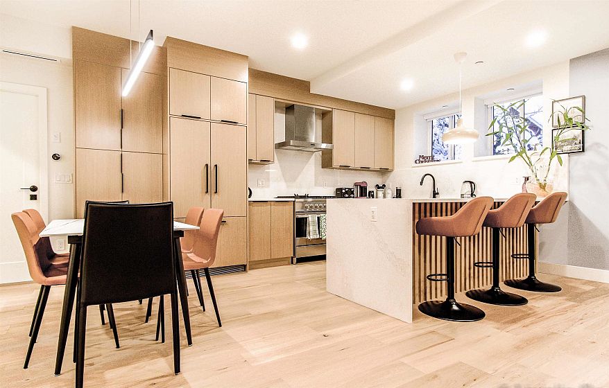 Built by Chorus & Asanti Developments, this stunning one-level character retention townhome in Riley Park offers 3 bedrooms and 2.5 bathrooms. Thoughtfully designed with a spacious open layout, it features a modern kitchen with quartz countertops, counter seating, and premium Fisher & Paykel/Blomberg appliances. The primary bedroom includes a walk-in closet and a luxurious ensuite with double sinks. Radiant in-floor heating and a gas fireplace provide year-round comfort. Enjoy outdoor living on your private patio, plus peace of mind with a built-in security system and 2-5-10 New Home Warranty. Situated on a quiet, tree-lined street just steps to shops, parks, and recreation. Located in the General Wolfe Elementary & Eric Hamber Secondary school catchments.Open House 2 to 5 pm Sat, Oct 12th