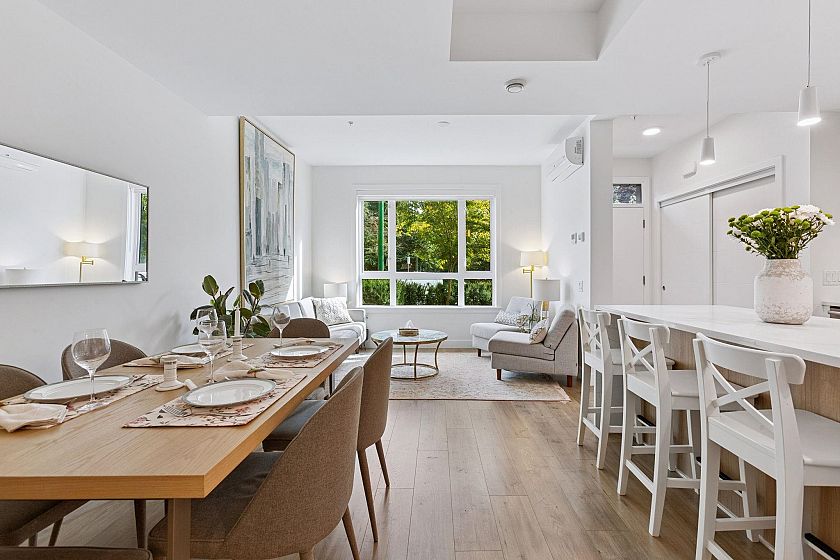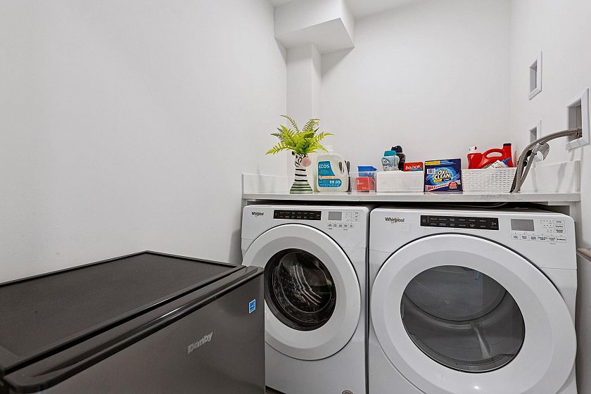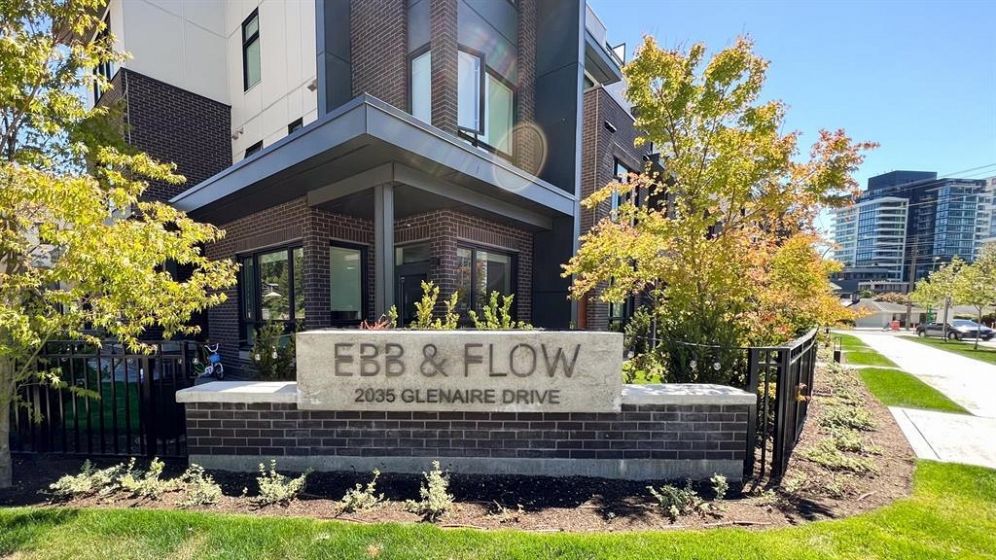 Welcome to Ebb and Flow! This stunning 4-bedroom, 3.5-bathroom home offers three levels of living space with a total of 1,603 sqft, plus 469 sqft rooftop deck. Nestled in a prime location of the sought-after Ebb & Flow complex, this home provides direct access from Sandown Place, making it ideal for families.The open-concept kitchen features premium Bosch appliances, including an integrated fridge, gas cooktop, wall oven,complemented by under-cabinet lighting for added convenience. Additional highlights include laminate flooring, a quartz backsplash, a waterfall-edge island, and two side-by-side parking spaces with storage. Enjoy radiant heat throughout and an upgraded heat pump for air conditioning in the summer. Located just minutes from Park Royal, Grouse Mountain, Highway and Downtown!