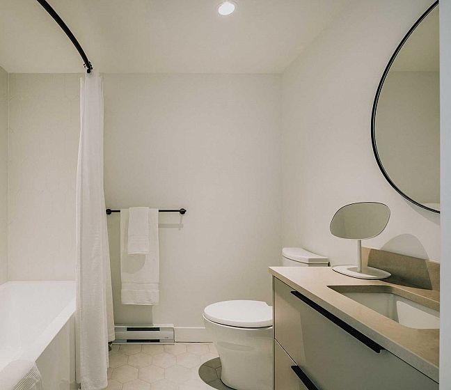 E15 JUST OFF MAIN by OpenForm. Winner of the UDI Award for Excellence in Ground Orientated Housing. This modern 3-bed, 2.5-bath home, designed by MA+HG Architects, spans two levels and features a private rooftop with views. Interiors by Cristina Oberti are complemented by large windows that flood the space with natural light. A secure entry opens from the tranquil inner courtyard. The kitchen offers ample storage, a gas cooktop, and appliances by Fisher & Paykel. The exterior features art by Scott Sueme, capturing the vibrant spirit of Mt Pleasant. Just steps from Main Street and minutes from downtown, E15 blends modern design with a creative edge. Built by Urban One and landscaped by Considered Design. Includes parking, storage, and a bike locker. 2-5-10 warranty. Move-in ready!