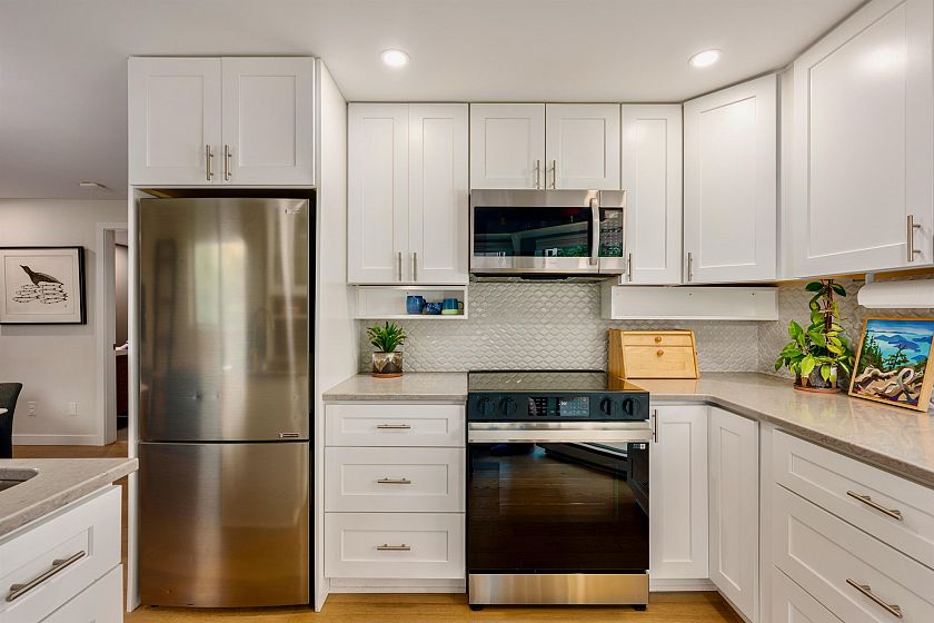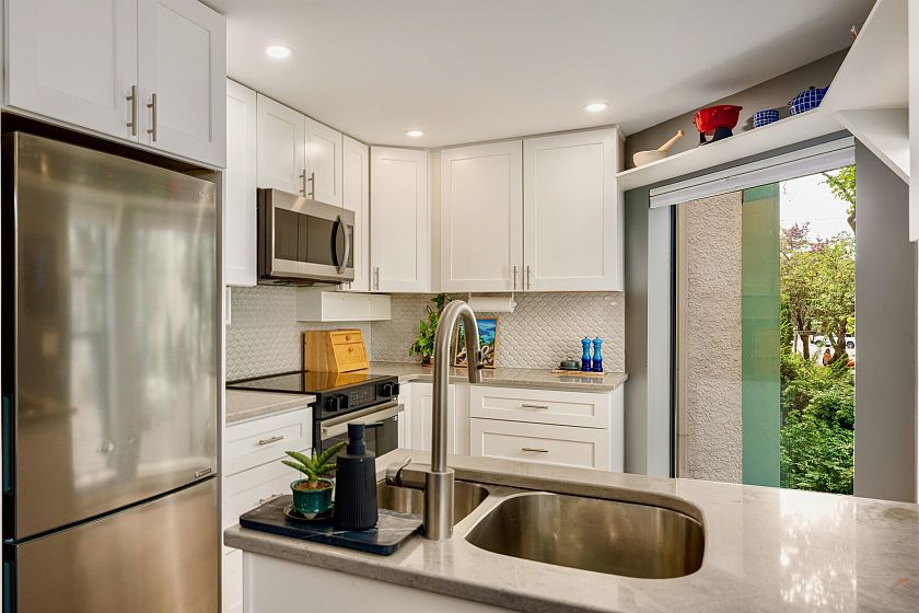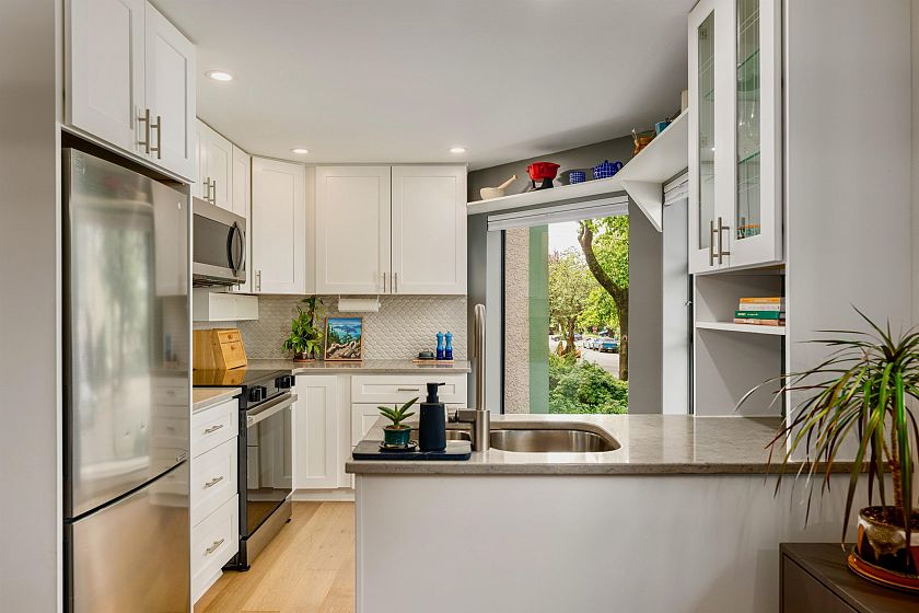 West End Unicorn! Fully Renovated, bright 3-BED corner TOWNHOME. Two outdoor spaces! SECURE parking. Warm Contemporary vibe; Upgraded Hardwood throughout; complete bathroom reno's; quartz finishes; SS appliances; fresh paint; pot lights; smart lights/thermostat; generous storage. Most unusual: a dedicated laundry room. Large Windows. Custom blackout blinds support quality sleep and you'll retreat to the upper balcony or lower patio just off the primary bedroom. Welcome friends into your separate entrance. Such a pretty corner at tree-lined Bute and Barclay streets with independent grocers and coffee a short hop away. Stroll to work, Davie, Denman, Robson, and cycle Stanley Park! This immaculately kept home with custom touches invites the next discerning professional couple or young family.