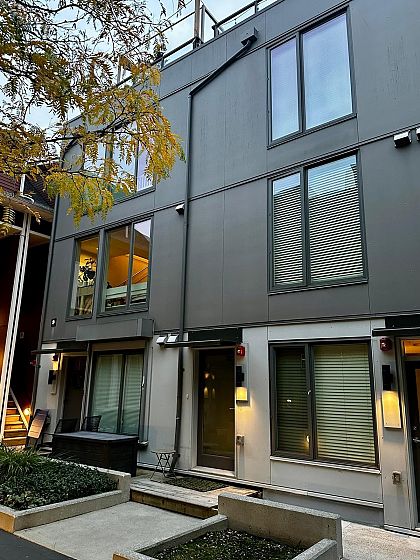 Welcome to this stylish 2-bedroom plus den, 3-bath townhouse in Vancouver’s vibrant Mount Pleasant. The showpiece is the 230 sq ft rooftop sundeck with panoramic city and mountain views — perfect for entertaining or relaxing under the stars. This modern home features a bright open layout with engineered hardwood floors, a gourmet kitchen with quartz countertops, sleek cabinetry, S/S appliances, and a gas range. Upstairs are two spacious bedrooms & 2 full baths, while the main level offers a versatile den or optional third bedroom plus a half bath. Additional highlights include direct rooftop access, one parking stall, and bike storage. Steps to Main and Fraser cafés, restaurants, shops, and transit, this home is perfect for owners or investors seeking contemporary Vancouver living.
