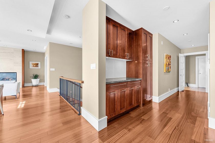 This elegant two level townhouse, crafted in concrete and stone by British Pacific Properties, features an expansive open concept design. Floor to ceiling windows frame sweeping views of the city skyline, harbour, and beyond. The living and dining areas flow into a versatile office/media room. The kitchen boasts premium SubZero & Miele appliances. The lower garden level offers two luxurious primary suites with private patios, a den/office with separate entrance, large laundry/storage room, private two car garage, heated driveway, geothermal heating, and A/C. Steps to Collingwood Jr School, Hollyburn Club, and trails.