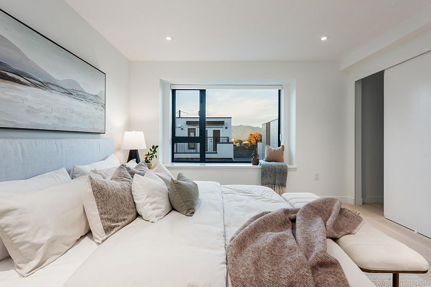 Discover Kinsley by Intergulf, this stunning 3-bedroom, 2-level townhome offers a perfect blend of style and convenience in the heart of the Cambie Corridor. Nestled in a tranquil residential neighbourhood, steps from Queen Elizabeth Park, Hillcrest Community Centre, top hospitals, and the future Oakridge Town Centre, this location is hard to beat. Enjoy breathtaking North Shore mountain views from the roof top terrace, while inside, high-end details shine—engineered hardwood floors, a premium integrated Miele appliance package with gas cooktop, A/C, triple-glazed windows, and up to 9ft ceilings that fill the space with natural light. Move in ready this Summer 2025. Call today to book your private appointment