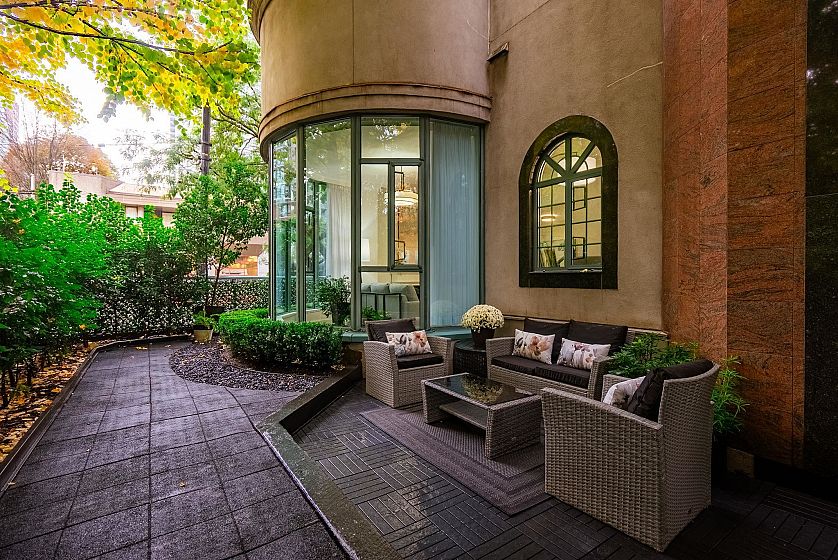 Welcome home to this beautifully renovated two-level concrete residence offering 1,532 sq.ft. of elegant interior space plus 668 sq.ft. of private outdoor living. This air-conditioned home features a gourmet kitchen with stainless steel appliances, rich hardwood flooring, designer lighting, and a cozy fireplace. The thoughtful layout includes two spacious bedrooms, both with ensuites, a dedicated den or office, and generous in-suite storage. Enjoy the sunny, west-facing patio—ideal for entertaining—set within one of Yaletown’s most sought-after addresses. Includes three parking stalls and a storage locker. Call to confirm the open house or book your private showing. Open House Sunday Oct 19 2-4