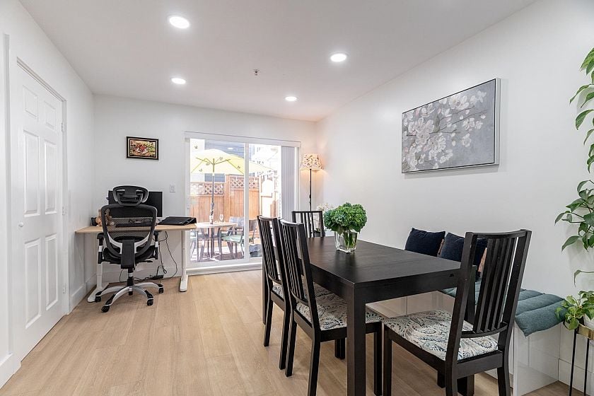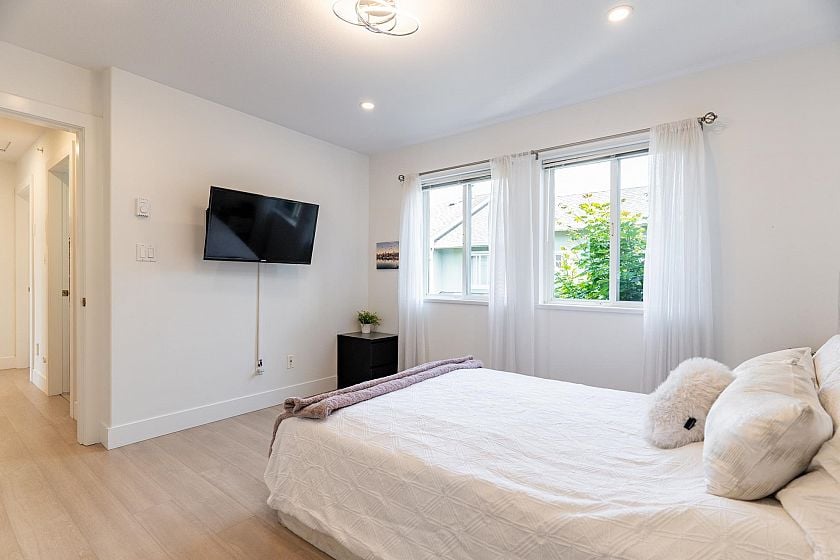 Almost SQF 1,400! Unbeatable location! Fully renovated in 2021, 2 storey townhouse with the feel of a detached home and well kept, like new, 3 beds, 2.5 baths, 1 covered Garage and one biweekly shared parking, almost SQF 400 south facing fenced backyard, a balcony upstairs, walk-in-closet, gas fire place to heat up the whole unit, easy stairs with a landing, family room, breakfast area next to kitchen, Den or pantry as you wish to use! powder room on main floor, extra free street parking, close to top schools, transit, restaurants, shopping, mall, beaches, Gym, trails, bike paths, quick 10-15 minute drive to downtown, and more. Come, see the townhouse and then explore the area.