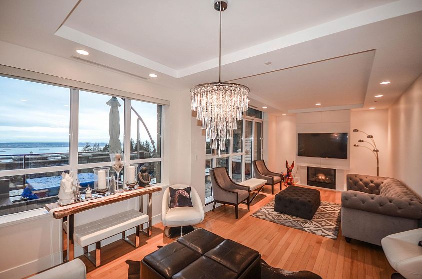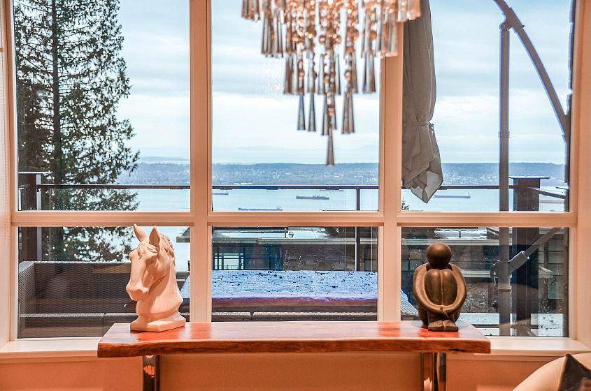 Luxury townhome living in West Vancouver’s prestigious British Properties. This private corner residence offers over 2,000 sq ft on two levels, with floor-to-ceiling windows that frame sweeping views from the city to Vancouver Island. Designed for quiet comfort and style, the home features a gourmet kitchen with high-end appliances, elegant stone finishes, and spacious living and dining areas. Both bedrooms include ensuites, while two private patios, a walk-in closet, ample storage, and a secure 2-car garage add to the convenience. A rare opportunity to own in The Properties at Twin Creek Place.