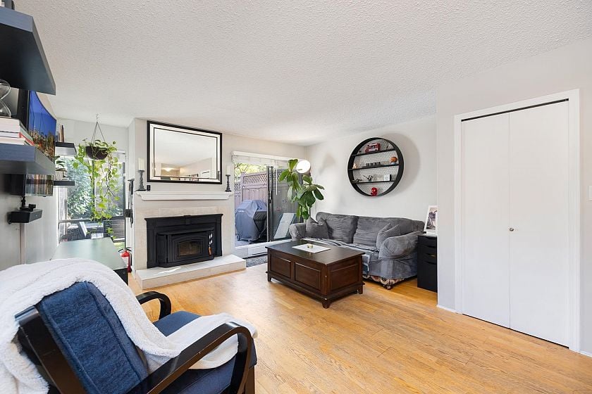 Welcome to this bright and updated 2-bedroom, 1-bathroom townhome in Central Lonsdale — where location truly matters. Just two blocks from the vibrant Lonsdale corridor, you’ll enjoy easy access to shops, restaurants, services, and transit options including the SeaBus. This south-facing, two-level end unit is filled with natural light and features hardwood floors, plenty of windows, and a cozy wood-burning fireplace in the living room — perfect for those cooler fall evenings. Upstairs offers two spacious bedrooms, a newly renovated modern bathroom, and in-suite laundry. Enjoy your own large private outdoor yard, perfect for relaxing or gardening. Inside, you’ll appreciate the ample internal storage throughout the home. PET FRIENDLY, 2 pets allowed.