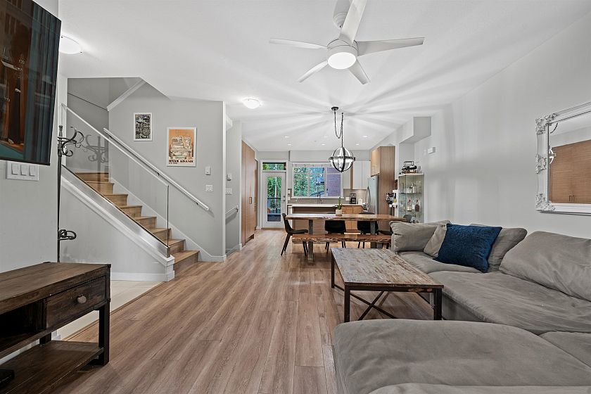WELCOME TO MAPLEWOOD VILLAGE! The perfect North Vancouver townhome for growing families who want neighbourhood convenience and an active lifestyle. This 3 bed/3 bath home stands out with all 3 bedrooms on the main level, a main-floor powder room, and an open living and dining concept with lots of storage. The 613SF tandem double garage is versatile—perfect for cars, storage, a gym, or playroom. With 1,377SF of living space, enjoy a fenced entrance, private balcony, s/s appliances, gas range, quartz counters, hot water on-demand, and overheight ceilings. Steps to Seymour River, parks, schools, shops, and restaurants, plus quick access to Hwy 1, DT Vancouver, skiing, biking, and golf. A vibrant, family-friendly neighbourhood you’ll love to call home!