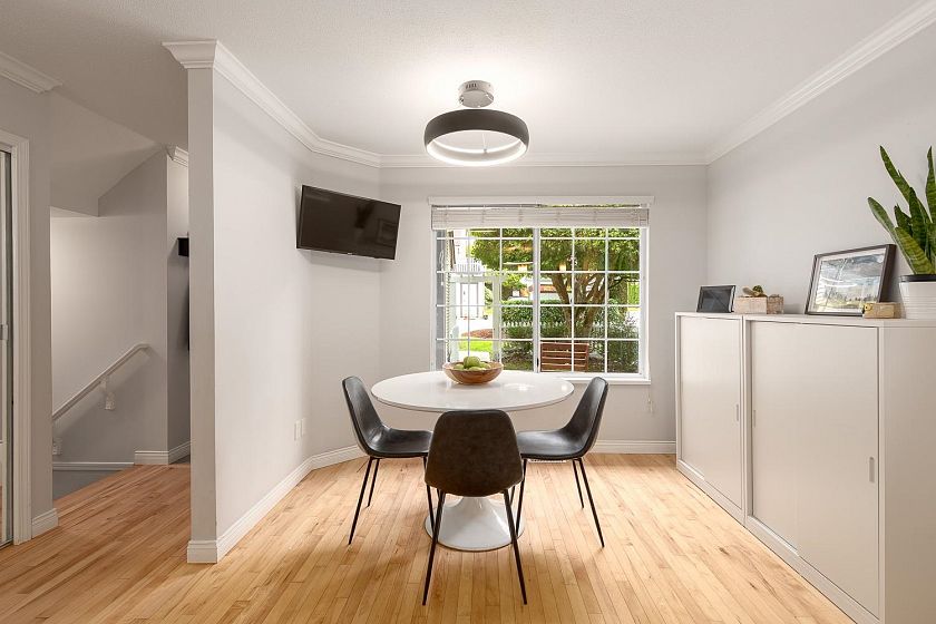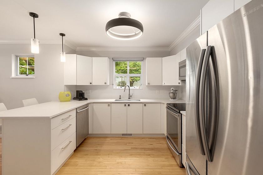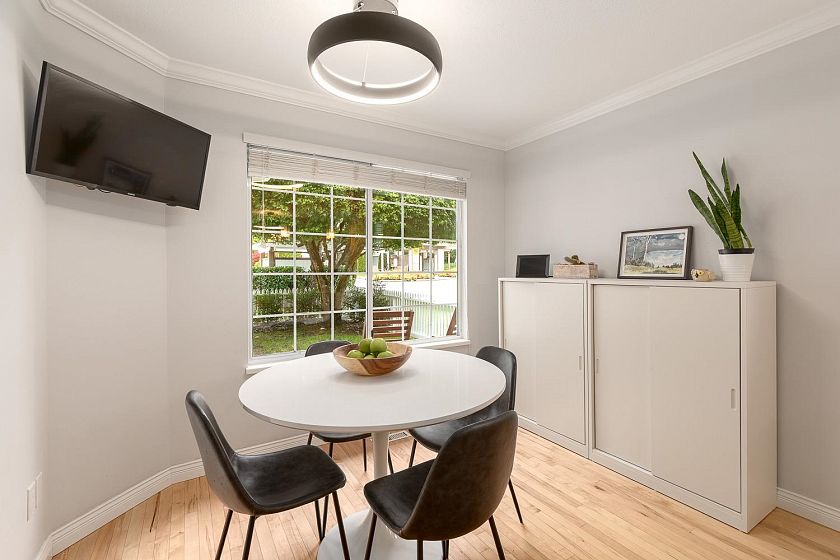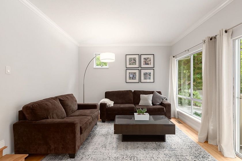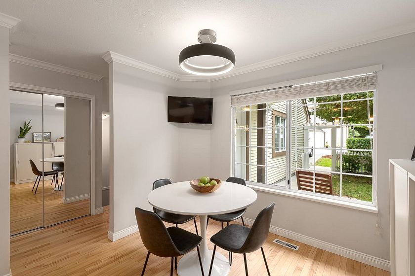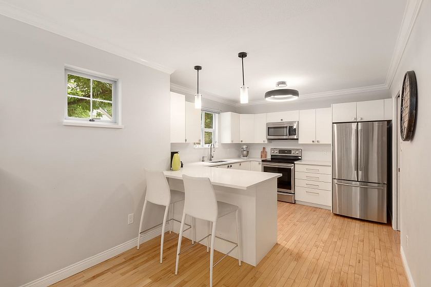 Sought after Hartford Lane. Rarely available end unit with developed lower level. Picture perfect home complete with a white picket fence that encloses one of the largest front yards in the complex! Bring the family, there are three bedrooms, three bathrooms, a rec room and two office spaces. South facing deck off the living room, and generous sized grassy outdoor space down. Fabulous and bright, nicely appointed, tons of storage, and a garage all in a safe and gated community. Close to all levels of schools, (Dorothy Lynas French Immersion just a 2 minute walk!), Parkgate Village, shopping, restaurants, transit, recreation and the library. Beautiful accommodation in a wonderful area!