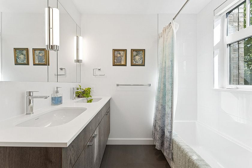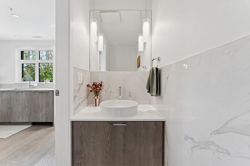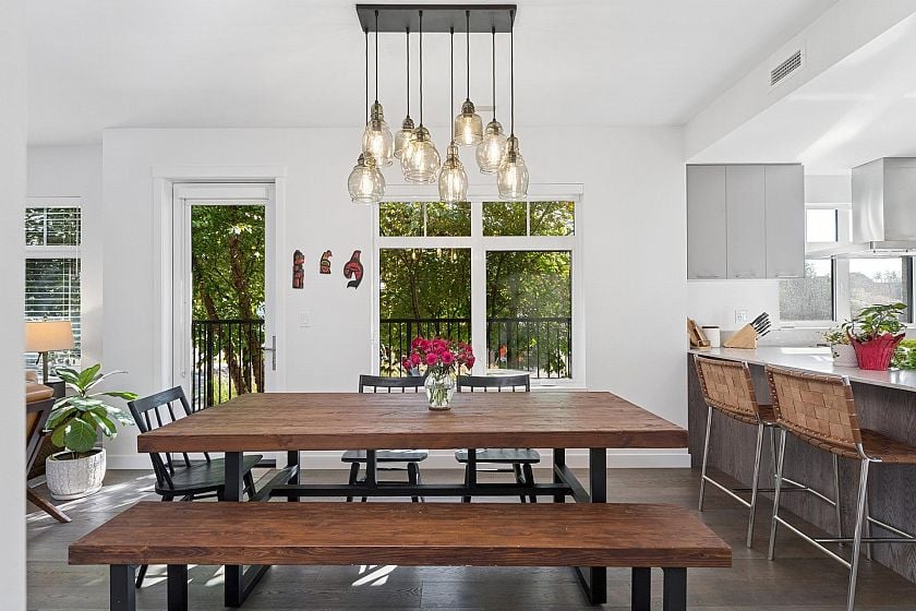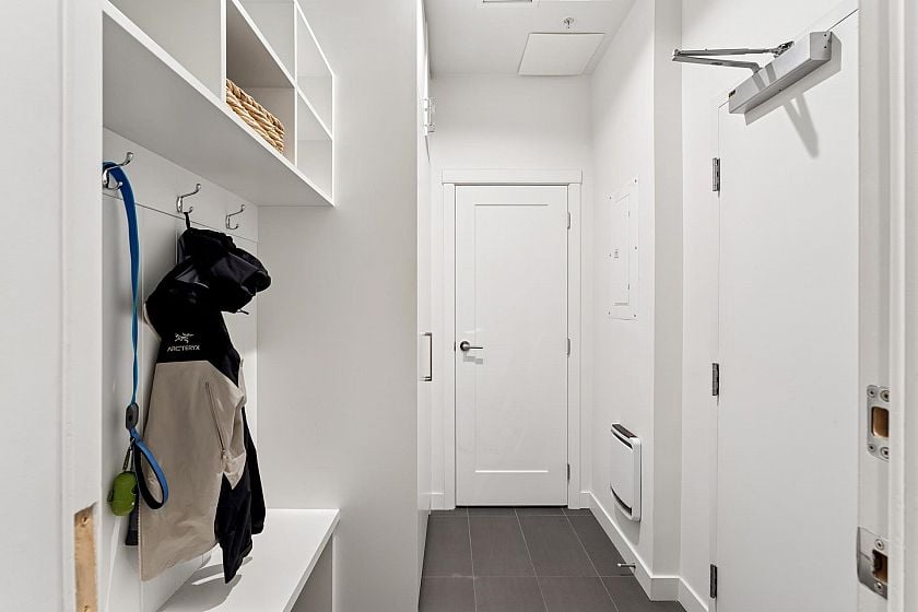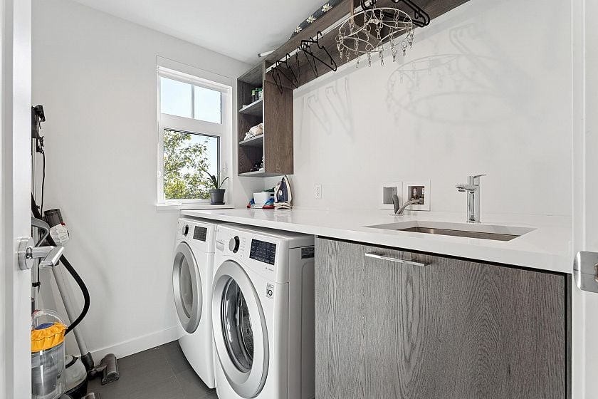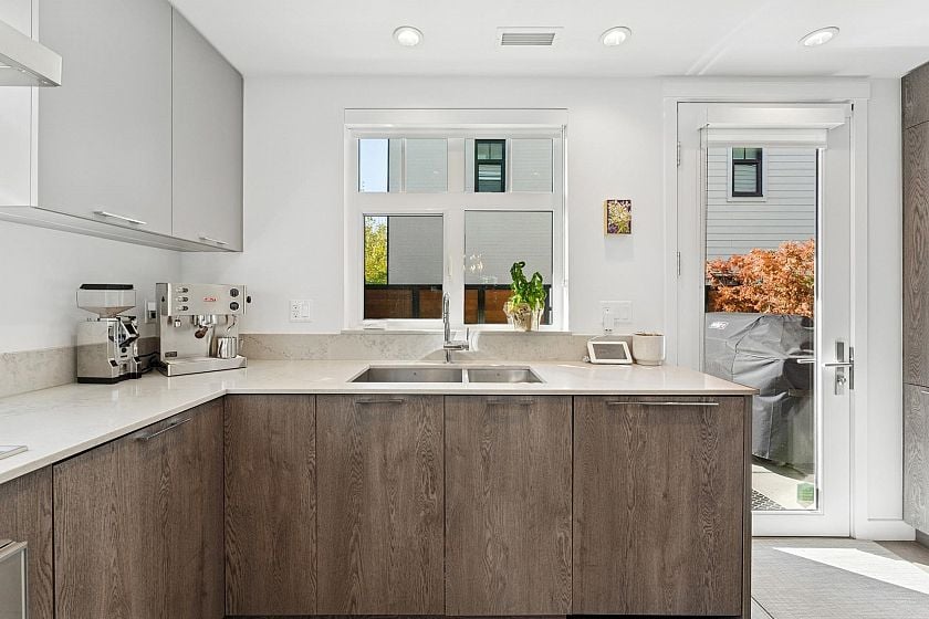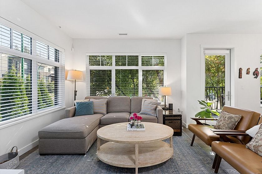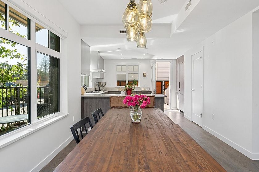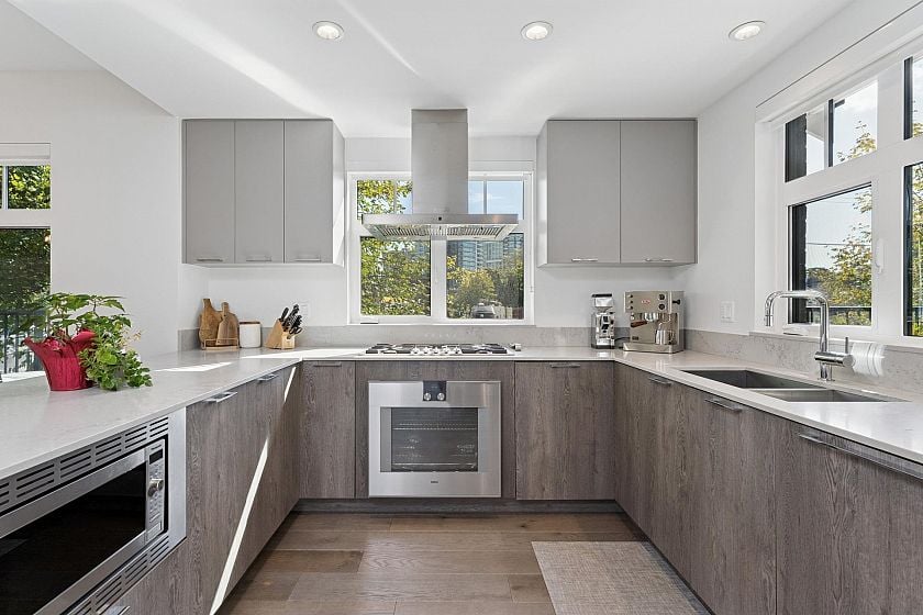 Located in 'Holland Row', a boutique riverfront community in Lions Gate Village, this 4-bed, 3-bath end-unit townhome offers 2,046 sqft across 4 bright levels. Just 5 yrs old & feels brand new, with the space of a detached home & ease of rowhome living. Main level features open living, engineered oak floors, chef’s kitchen w/ quartz counters, Gaggenau appliances, bistro balcony & terrace. Upstairs has 2 beds, 5-pc bath & full laundry rm. Top floor primary retreat w/ walk-through closet & spa-like ensuite. 4th bed is ideal home office. Entry level offers mudroom, pantry & private garage w/ EV charger + 2nd stall. Feats: A/C, 9' ceilings, blackout blinds, smart thermostat. Steps to trails, rec centre, daycare, Park Royal & Ambleside. Easy access to DT & Hwy 1.