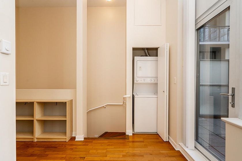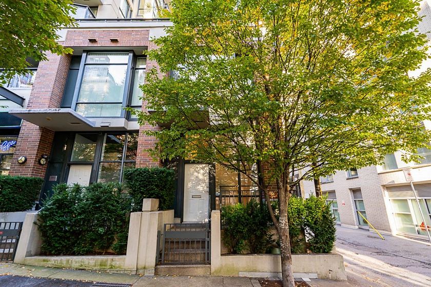 Two-level corner end-unit townhome in the heart of Downtown Vancouver, adjacent to Yaletown. Features include 11-ft ceilings, large windows, and nearly 100 sq.ft. of outdoor space. Main floor offers a kitchen with an open living/dining area, powder room, and flex/storage space. Upper level includes a large den with access to a quiet above-ground patio and a bedroom that accommodates a king bed with dual closets and a cheater 4-piece ensuite. Building amenities: 24-hour concierge, rooftop patio, fitness centre, meeting room, bike storage, and secure parking. Steps to restaurants, entertainment, sports venues, shops, and the seawall.