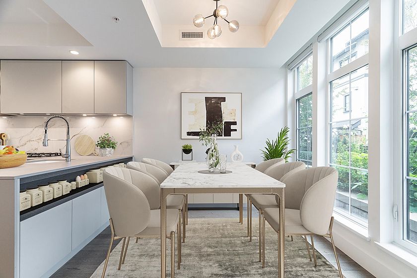 Welcome to Mason — a luxurious townhouse community by award-winning developer Cressey, located in the vibrant heart of Lions Gate Village. Inspired by timeless European design, this spacious three-bedroom + den townhome offers over 1,500 sq. ft. of refined living space. The top floor features a stunning primary bedroom with soaring vaulted ceilings, air conditioning, multiple walk-in closets, a custom laundry centre, and a huge storage room. Enjoy added conveniences like a gas BBQ hookup, dedicated bike parking, and thoughtful upgrades, including window and door screens, plus elegant wood flooring. Steps away from the Lions Gate Community Centre, Klahanie Park (squash and rugby club), daycare, retail shops, dog park and Capilano River. Minutes to Park Royal, Grouse Mountain, and downtown.