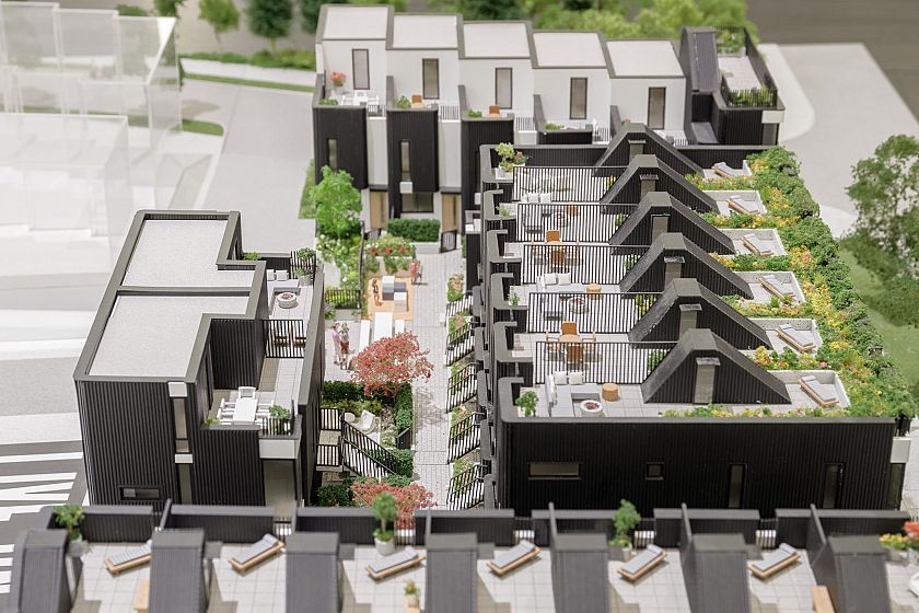 The Cut by Fabric Living is East Van’s most anticipated collection of townhomes and garden flats, offering a rare blend of urban design and ground-oriented living just steps from Trout Lake. These 1–3 bedroom homes feature private outdoor spaces, 9ft ceilings on the main floor, over height windows, integrated Italian appliances, AC, EV pkg and Japandi-inspired interiors that balance simplicity with warmth. Placed along the Central Valley Greenway, walking distance to Commercial Drive & 2 Skytrains, The Cut offers exceptional connectivity, modern convenience with a strong sense of community around a central community courtyard. Homes start from the high $500,000s with completion Est. Early 2026. Our on site show home is open now by apt! Contact the sales team to secure your home at The Cut.