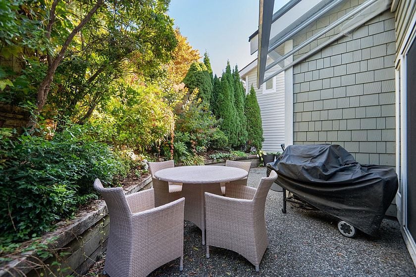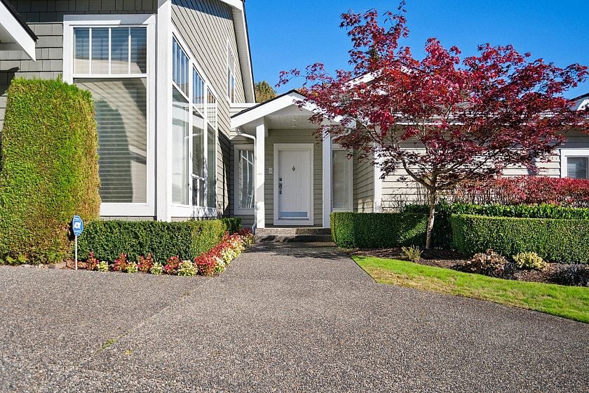 Welcome to Esker Lane! This bright and spacious 2,374 sq. ft. 4-bedroom townhome offers easy-care living with the feel of a detached home. Located on the quiet side of the street, it features 2 large primary bedrooms (one on the main floor) both with full ensuite bathrooms and big closets, plus two additional bedrooms upstairs. Enjoy vaulted ceilings, hardwood floors, designer finishes, and air conditioning throughout. A two-car garage and private gated setting complete this exceptional home. Perfect for downsizers seeking security, space, comfort, and peace of mind. OPEN HOUSE SUNDAY 1-3PM