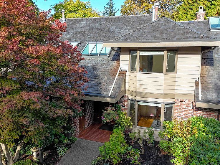 Welcome to Shaughnessy Place, Vancouver’s most distinguished gated community. Set amid mature gardens reflective ponds, this updated, house-sized townhome offers over 1,900 sq.ft. of refined living. Vaulted 16’ ceilings, skylights, & French doors fill the home with natural light, opening to a private patio surrounded by greenery. Inside, you’ll find a renovated kitchen with Italian granite countertops, custom cabinetry, oak hardwood floors, wool carpeting, & built-in surround sound. A lofted office, gas fireplace, & two spacious bedrooms, including a spa-inspired ensuite, complete the interior. Recent updates include a new cedar roof, boiler, & hot water tank. Enjoy 24-hour security, a pool, spa, sauna, & a massive private two-car garage. SHOWINGS: By Appointment