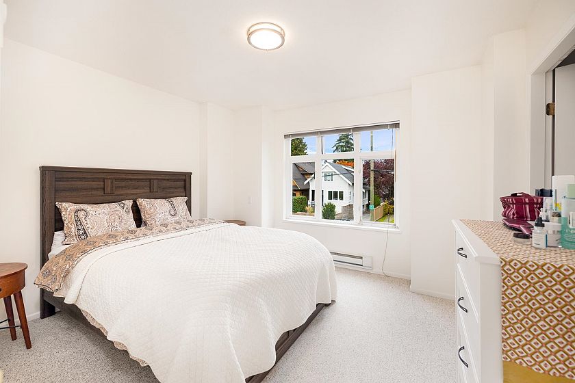 This custom built 3 bed, 3 bath townhome has been lovingly maintained since the current owner built it in 1996. Features include large living/ dining room on main floor. 3 large bedrooms with top floor principle bedroom features vaulted ceilings, ensuite bath and attached balcony. North facing views. 2 parking (1 garage, 1 parking pad).. Open House Sat Nov 8. 2-4pm