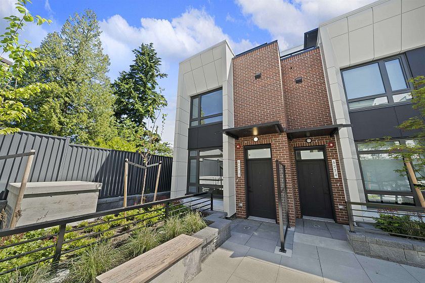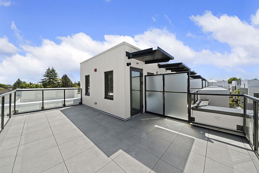 Welcome to WEST OAK by Shokai Properties — this stunning corner, east-facing townhome offers 2 Bedrooms, 3 Bathrooms + 2 Flex spaces in the heart of Oakridge. The main-floor den is large enough to serve as an additional bedroom and comes with a full bath — perfect for in-laws or guests. Enjoy entertaining on your expansive 259 sf private rooftop patio with city and neighborhood views. Designed for sophisticated living, this home features hardwood flooring throughout, fully tiled bathrooms, and a window niche in the kitchen that floods the space with natural light. Ideally located just steps from Oakridge Mall, the Canada Line SkyTrain, parks, restaurants, grocery stores, and top-rated schools — everything you need is within walking distance. 1 parking + 1 storage locker included.