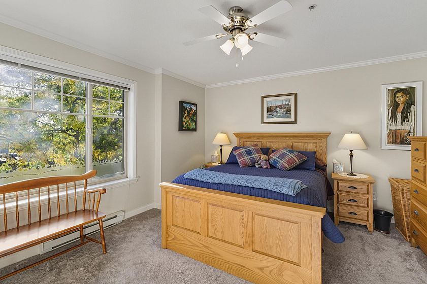 LOWER LONSDALE townhouse tucked away from the hustle and bustle in Burham Court, a sought after well maintained group of 19 homes. This spotless garden level home has been meticulously maintained and features a spacious kitchen adorned with quartz countertops, quality high-end appliances, modern white cabinetry and cork flooring. The main living room complete with a cozy gas fireplace leads out to a private bright South facing deck offering peek-a-boo City and Harbour views. With 2 bed/3 bath and a large home office with custom built-in cabinetry this unit has it all! Additional massive personal 148 sqft workshop/storage room currently being used as a recording studio will accommodate all your toys and equipment! A unique private hide-away situated in the heart of LoLo .... a must see!