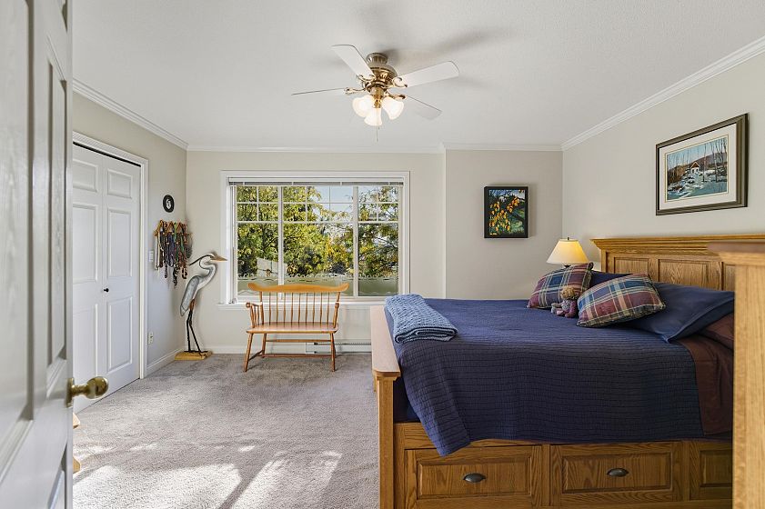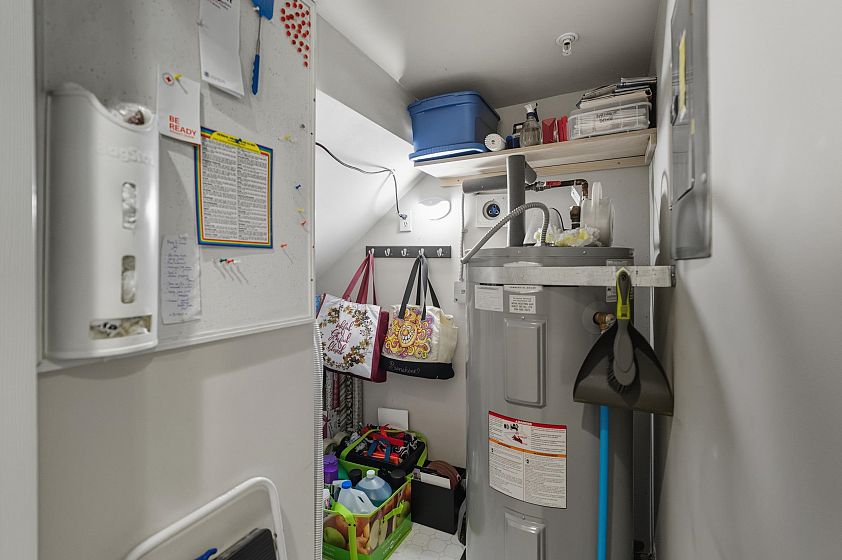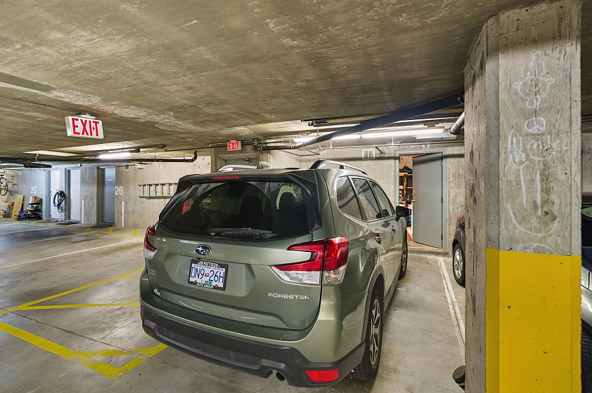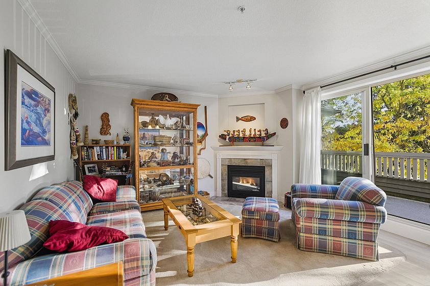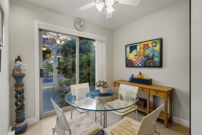 LOWER LONSDALE townhouse tucked away from the hustle and bustle in Burham Court, a sought after well maintained group of 19 homes. This spotless garden level home has been meticulously maintained and features a spacious kitchen adorned with quartz countertops, quality high-end appliances, modern white cabinetry and cork flooring. The main living room complete with a cozy gas fireplace leads out to a private bright South facing deck offering peek-a-boo City and Harbour views. With 2 bed/3 bath and a large home office with custom built-in cabinetry this unit has it all! Additional massive personal 148 sqft workshop/storage room currently being used as a recording studio will accommodate all your toys and equipment! A unique private hide-away situated in the heart of LoLo .... a must see!