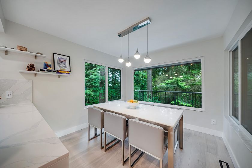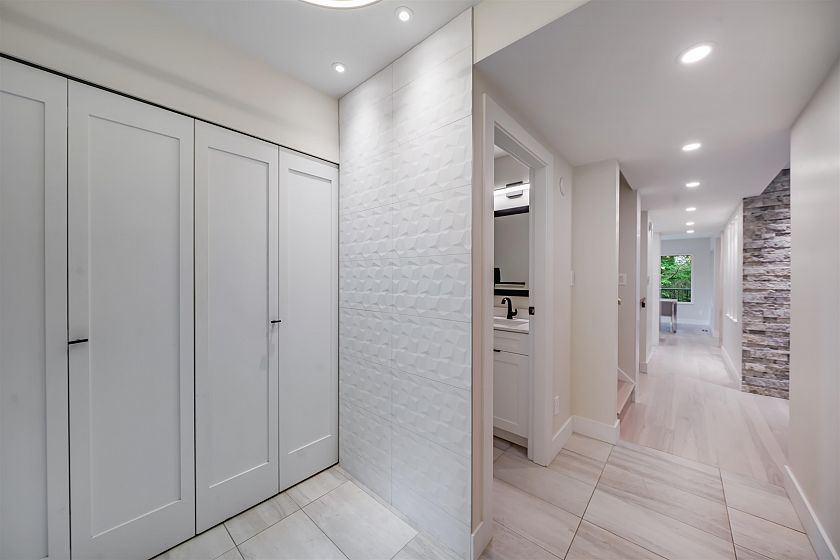 Stunning 3-level, 4-bed, 4-bath end-unit townhome in Lynn Valley’s coveted Laura Lynn complex. Surrounded by forest, this fully renovated home offers elegant West Coast living with 2,430 sqft of bright, functional space. Features include new triple-pane windows, gourmet kitchen with quartz counters, wine cooler and large island, 2 gas + 2 electric fireplaces, hardwood floors, built-ins and double carport. Lower level has media room, kitchenette and full bath, ideal for guests or suite. Covered deck and serene green space. Steps to top schools, parks, trails, pool, tennis and clubhouse. Open House Sun Oct 26, 1:45-3:15pm.