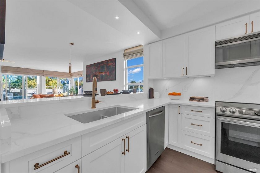 This Executive 3-Bedroom Luxury Townhome offers nearly 2,000 sq ft of living space, breathtaking city, mountain, and partial water views. Fully rainscreened, with a new roof and Trex decks completed in 2024. The home boasts many upgrades including airconditioning, a steam shower, jet tub, new Samsung range, quartz countertops, and modern LED lighting throughout. Enjoy the convenience of a private attached garage and 2 additional parking spots. Located in the Broadway Corridor (not on Oak St), this property is ideal as a current home or a smart investment, with rental income potential of over $6,000/month and significant redevelopment opportunities.Walking distance to Granville Island, Sea Wall, VGH,cafes & restaurants. Act now to secure this rare offering!
