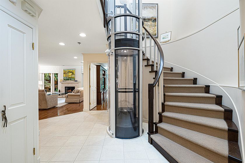 Set within the exclusive gated community of Shaughnessy Place II, this beautifully updated 3-bedroom, 2.5-bathroom corner residence offers exceptional privacy, backing directly onto VanDusen Gardens. A grand spiral staircase and glass elevator connect the main levels, while a bright solarium with curved floor-to-ceiling glass opens seamlessly to the private garden. The kitchen is appointed with high-end built-in appliances, and expansive windows flood the home with natural light. Upstairs, the primary suite includes its own private den, terrace, Air Conditioning, and a spacious spa-inspired bathroom with skylight. Two secondary bedrooms feature custom built-in desks, with one enhanced by a versatile murphy bed. Completing the home is a secure two-car garage with direct interior access.
