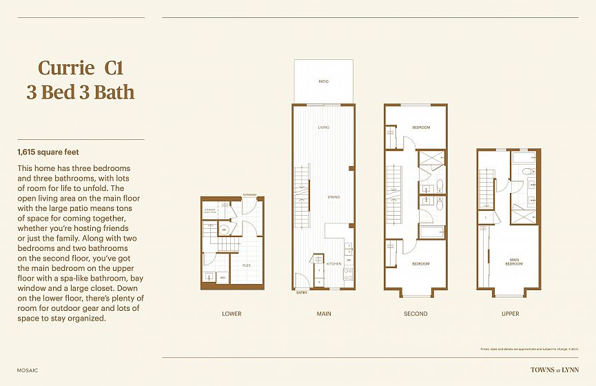 This spacious townhome offers 1,615 sq. ft. across four well-designed levels, with 3 bedrooms and 3 bathrooms, providing plenty of room for life to unfold. The main floor features an open-concept living area with a modern kitchen, dining, and living space that flows seamlessly to a large private patio — perfect for gathering with family or entertaining friends. Upstairs, the second floor includes two bedrooms and two full bathrooms, ideal for kids, guests, or a home office setup. The top floor is dedicated to the primary bedroom with a bay window, spa-inspired ensuite, and a generous walk-in closet. The lower level offers practical flex space for outdoor gear, plus direct access to the secure underground parkade — ideal for easy grocery drop-off.Access to 10,000 sq. ft. Lynn Club