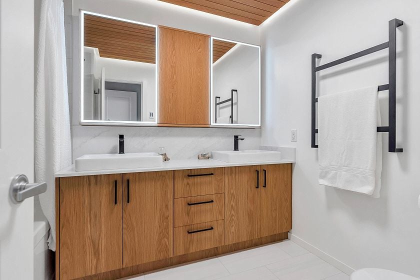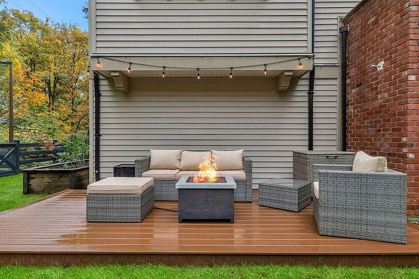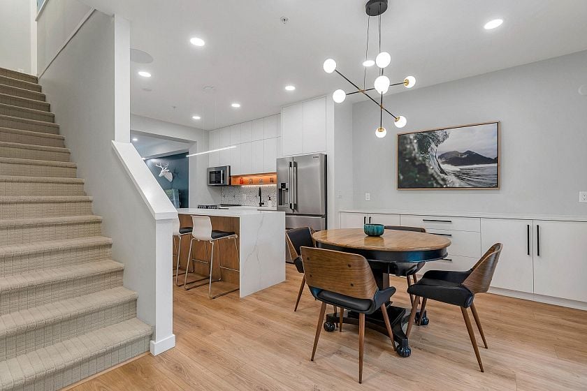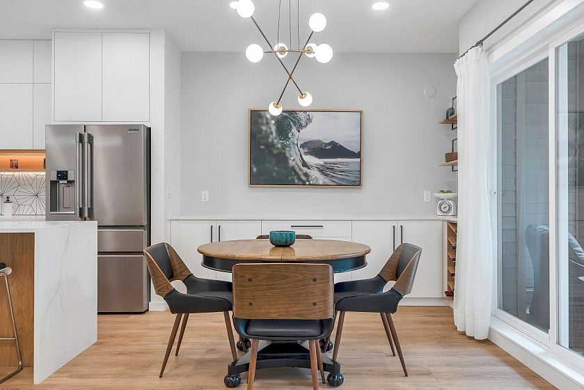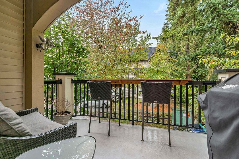 Beautifully renovated in 2025, this stunning 2 bed/2 bath corner townhome in Tanager blends modern luxury with serene, natural surroundings. Enjoy a reimagined kitchen with custom cabinetry, bar area, and premium appliances, complemented by in-floor heating on the main and in the primary ensuite. The open layout extends to a walk-out covered patio and a private, sun-drenched yard, perfect for relaxing or entertaining. Built in 2006, this 1600 sq ft home features a 2-car tandem garage with bonus sauna, workshop/gym, and generous storage. Nestled among trees yet close to trails, golf, shopping, and transit-just 15 min to downtown. Low strata fees in a peaceful, sought-after community.