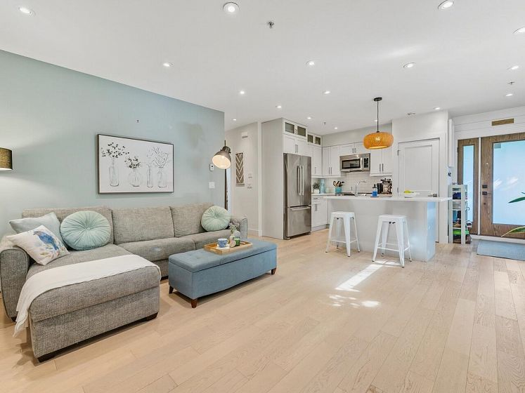 Location! Location! Location! This Mt Pleasant West townhome is in a boutique craftsman style collection of 4 homes on a quiet, cherry blossom lined, bike lane street and has overheight 8’5” ceilings, radiant heating and cozy gas fireplace surrounded by custom built ins, a cooks kitchen with gas stove and island for extra prep space & lots of storage. With 2 spacious bedrooms and 2 spa-like bathrooms, it has East, West and South windows, a lower BBQ patio and an upper garden patio perfect for afternoon cocktails! Oversized storage locker, bike room, and bonus storage shed ensures no need to worry about putting away all your gear or seasonal items! Tasteful finishes such as white oak floors and quartz counters complete this airy & efficient floorplan.