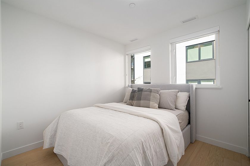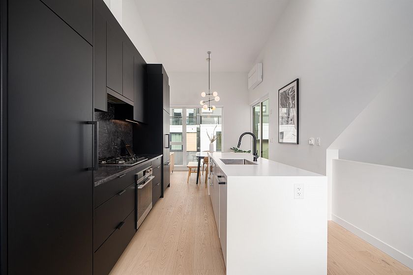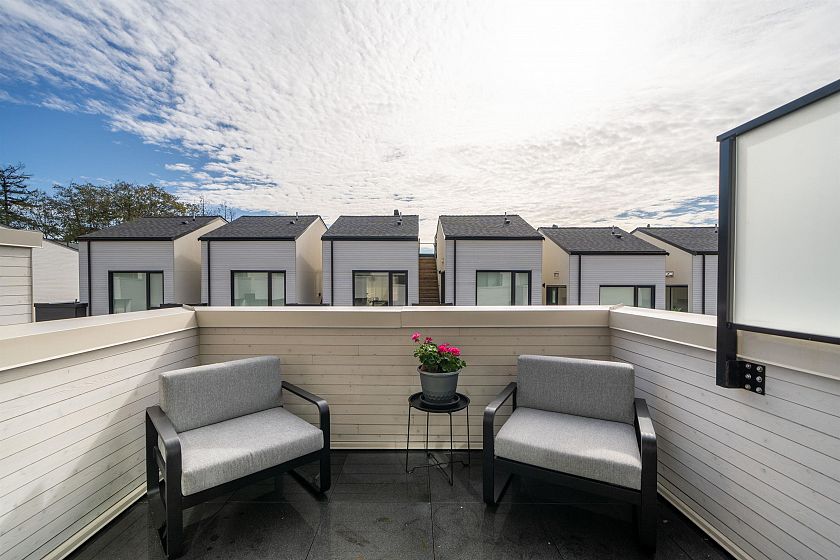 Welcome to Morrison on the Park where an immaculate townhouse awaits! Nestled in the heart of Moodyville, this 3 bed, 3 bath 1,255 square foot townhouse is designed to offer the comfort of detached home living with enhanced convenience. Unwind on your rooftop patio with panoramic mountain and ocean views, or entertain in your open concept kitchen and living room basked in natural light. Highlights include: A 315 square foot private storage room that can double as a workshop or personal gym, a private 2-car garage, air conditioning, 14'10” vaulted ceilings, and 4 patios. Minutes from Lonsdale Quay, and only steps away from Moodyville Park/playground and the spirit trail, there is never a dull day with your loved ones!