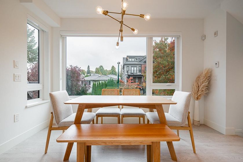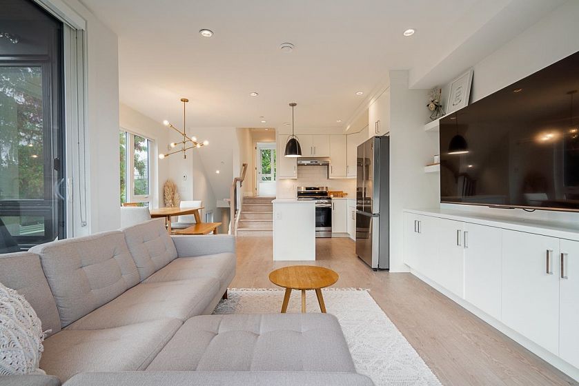 Look no further! This bright and airy corner 3 bedroom townhome will check all the boxes. Inside is almost 1100 sqft of well laid out living space with an open and spacious main floor with tons of windows and natural light. There are 3 generous sized bedrooms, 2 of them the private outdoor spaces providing plenty of space for a growing family. This home is equipped with comfortable radiant floor heating, HRV, hw on demand, built in alarm, smart doorbell, gas bbq hookup, and custom built in. Located in the popular Norquay Village this home is conveniently located across the street from John Norquay Elementary and a short walk to Norquay & Slocan park and 29th St skytrain. 1 EV parking and 3 storage lockers are included with this home.