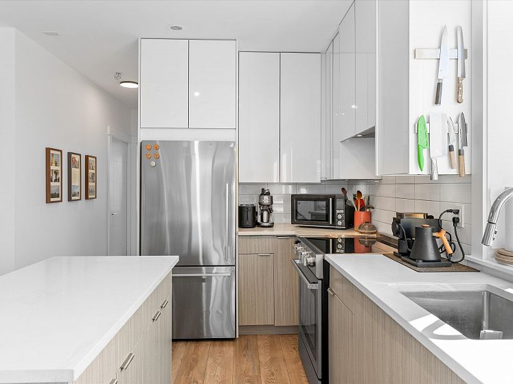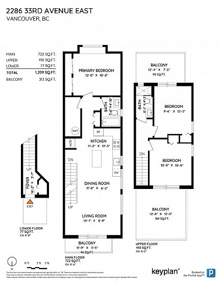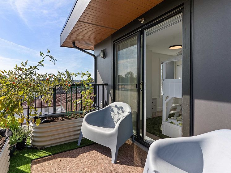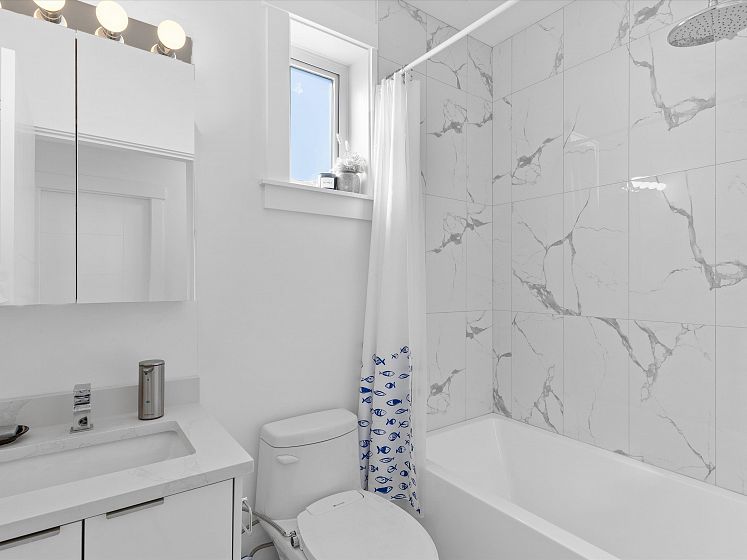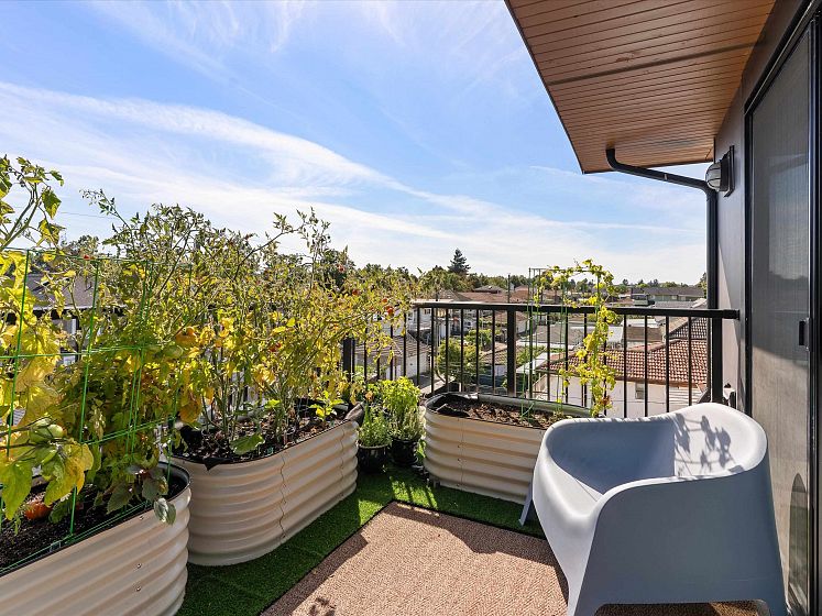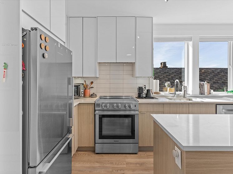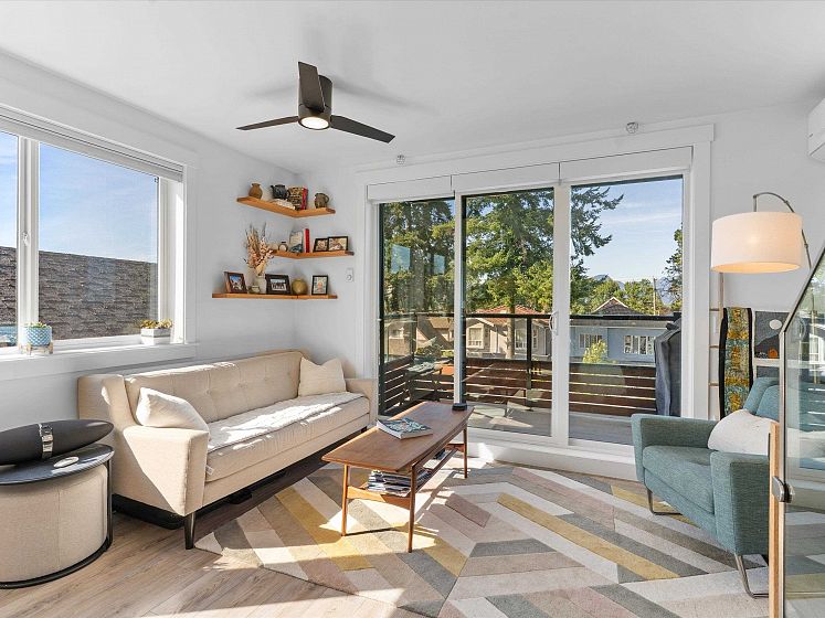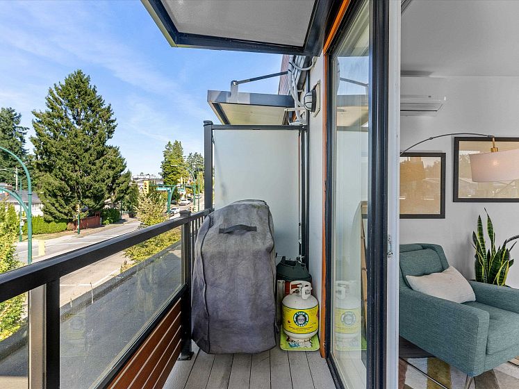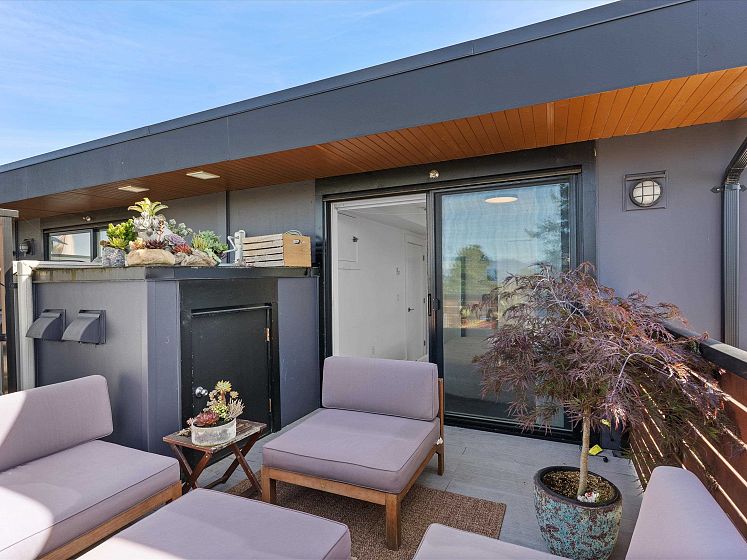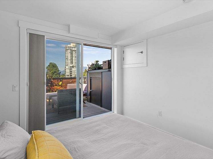 Gorgeous, modern & sun-filled 3 bedroom townhouse with 300sqft of outdoor space and a heat pump for A/C! This home has a spacious 1,200sqft floor plan with plenty of windows featuring mountain views yet privacy from the neighbours. The main floor offers an excellent kitchen with tons of storage, dedicated dining space & large living room with a BBQ balcony. You'll also find a large primary bedroom, full bathroom & flex space for storage or a home office. Upstairs is 2 bedrooms, 2nd bathroom & 2 large roof decks: one facing south + one facing NW for incredible mountain views. Extra features include storage lockers, dedicated parking, window blinds & low strata fees! Walking distance to the Skytrain, Kingsway, schools, parks and tons of amenities. OPEN HOUSE Sat/Sun Nov 8/9 from 1-3pm!