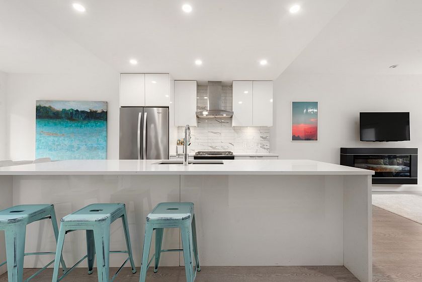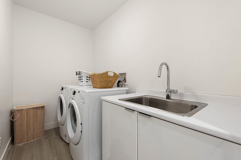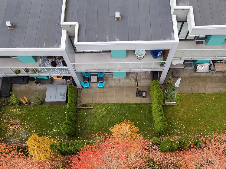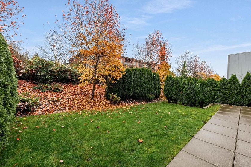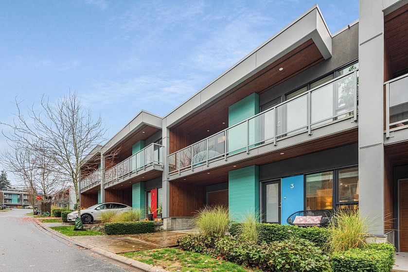 Seymour Village RARELY AVAILABLE 2 LEVEL 1795 SQFT townhome, where modern design meets West Coast tranquility. This stunning 3-bed+DEN, 3-bath townhome offers open and efficient floorplan for those looking for a home that has multiple outdoor spaces, high ceilings, and an entertainer's dream. The gourmet kitchen features stainless steel appliances, gas range, quartz countertops, and a large island. Enjoy seamless indoor-outdoor living with multiple patios and balconies, including an oversized covered private backyard. Upstairs, find spacious bedrooms, spa-inspired bathrooms, and convenient upper floor side-by-side laundry room. Complete with an attached garage and driveway parking, this home is ideally located near trails, Cates parks, Mt Seyrmour, schools, and Parkgate Village.
