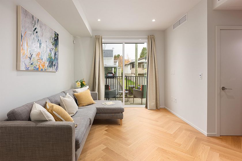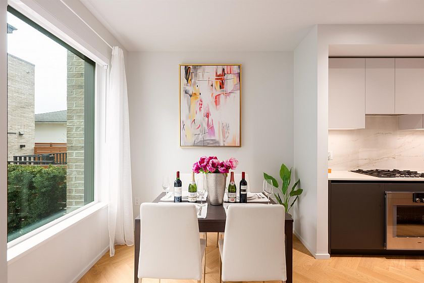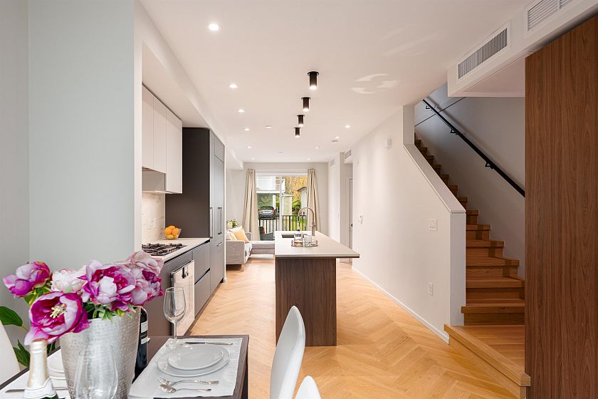 Rarely available quiet, court yard facing 3 Bedroom + Den + Flex Modern Boutique townhome in ROWE by Bosa Properties. Thoughtfully designed by the acclaimed EKISTICS Architecture with interiors by Ste. Marie, this 3-bedroom, 2.5-bath residence showcases modern elegance and open-concept living. Premium features include herringbone-pattern hardwood flooring on the main level, hardwood throughout, multi-zone heating and cooling, sleek Dekton countertops and an UPGRADED Gaggenau appliance package. Enjoy abundant outdoor space with a private front yard, a backyard patio, and a spacious terrace off the primary bedroom. Conveniently located near public transit and within the Jamieson Elementary and Eric Hamber Secondary school catchments. Open House: Jan 10 (Sat) 2-4pm.