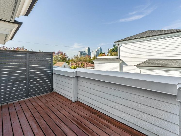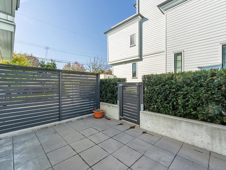 Outstanding 3 bedroom, 2.5 bath executive townhome in pristine condition. Thoughtfully designed, this beautiful home offers premium quality finishes including air conditioning for year round comfort. Bosch integrated appliances, gas cook top, stone counters & contemporary cabinetry create a sleek and streamlined kitchen. The home features a private patio on the main level plus a rooftop deck off the primary bedroom—perfect for relaxing. The lower level includes a generous sized storage or flex room, laundry and direct access to two secured parking stalls, including one EV. All of this located in a quiet, family-friendly area that offers easy access to the Canada Line, Winona Park, Langara Golf Course, excellent school catchments and nearby shops and restaurants. Showings by appointment.