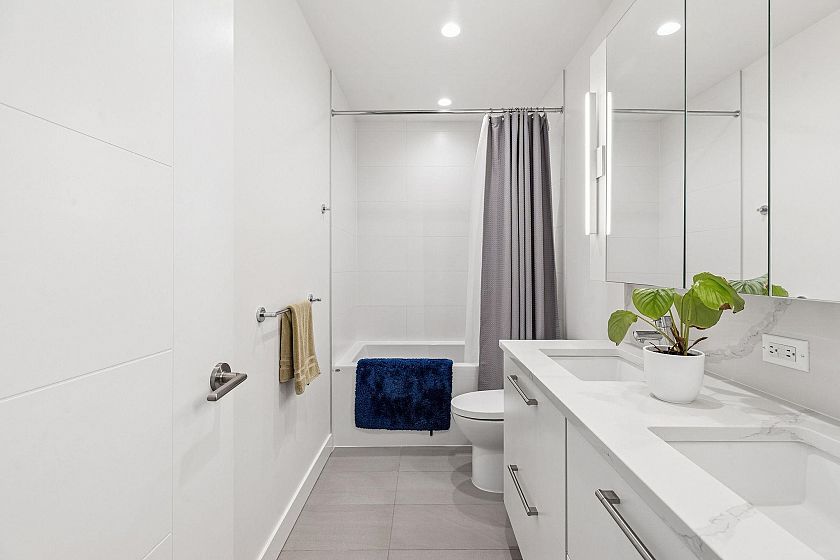 Welcome to Ebb & Flow in Lions Gate Village. This spacious 2 Bedroom + Den, 2 Bathroom upper level stacked townhome offers excellent privacy with a stunning rooftop patio. Features include an open layout, radiant in-floor heating, Bosch appliances, quartz counters, roller blinds, and a large primary bedroom with walk-in closet and ensuite. The den is perfect for a home office, nursery or 3rd bedroom as it's currently being used. This home comes with 2 parkings stalls and storage and A/C-ready rough-in. Steps to the new Community Centre, trails, and a short 4-minute drive to Park Royal and Ambleside Beach. This home lives like a 3 bedroom for the price of 2! Open House: Saturday, Nov 29th 2-4pm