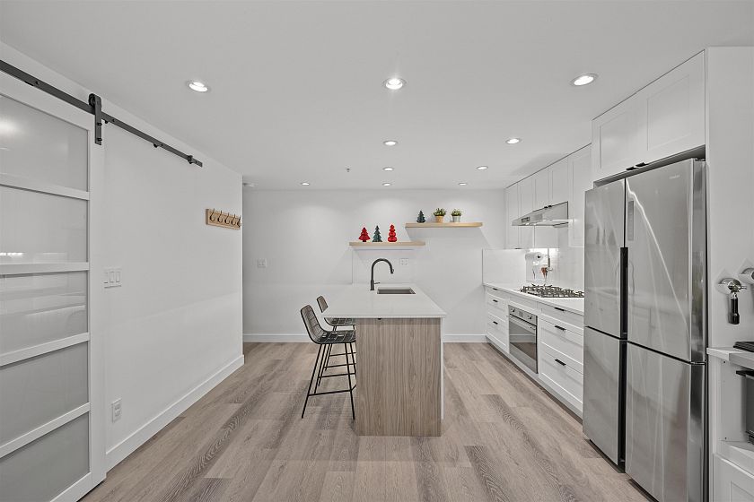 Look no further - the CONCRETE Fairview townhome that you've been waiting for has just hit the market! This elegant 2storey home offers 2beds/3baths, and has been tastefully updated with a new kitchen, new bathrooms, updated appliances & fresh paint. Enter in through the private entrance off of the 118sf patio and into an open concept lower level with a spacious living room, gourmet kitchen, eating area, ample storage & a conveniently located powder room. The upper level offers two generously sized bedrooms, two additional bathrooms, and a bright patio. The iconic '700 West 8th' building is just steps from Whole Foods, Cambie Street eats, major bus routes, Skytrain Stations, and just a short walk to Charleson Park and the beautiful False Creek seawall.