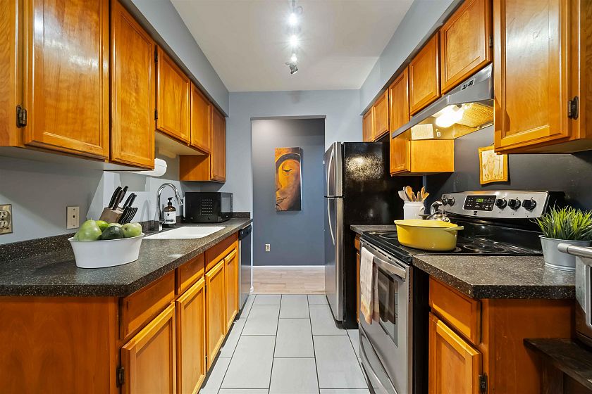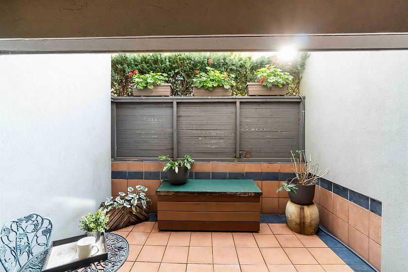 Come home to this spacious 808 square foot one bedroom townhouse with it's own front door street entrance. Enjoy the luxury of two outdoor spaces that expand your useable footprint. Huge living room opens seamlessly to your private patio, ideal for entertaining or just relaxing. North facing deck off the bedroom gives city & mountain views - perfect for enjoying your morning coffee. Extremely well maintained complex - fully rainscreened, roof done in 2022, updated windows and depreciation report. Enjoy the convenience of living steps from Granville shopping, restaurants, False Creek Seawall, Parks, Granville Island, transit lines and the Broadway Line. Insuite laundry, secured underground parking, two pets and rentals permitted - this one checks all the marks.