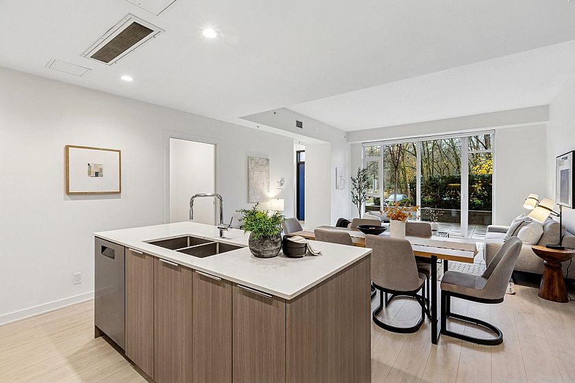 GORGEOUS concrete 2 BED, 2.5 BATH + DEN townhome at HUNTER in Lynn Creek - a vibrant, family-friendly community surrounded by nature. This modern contemporary home overlooks Seylynn Park & features a large private patio ideal for summer BBQs & relaxed afternoon lounging. The bright open plan with 9' ceilings offers over 1,540 SF of beautifully curated finishes, including a gourmet Fisher & Paykel kitchen w/quartz counters & sleek European cabinetry. Enjoy spacious bedrooms with spa-inspired baths, wide-plank flooring & air conditioning throughout. Amenities include a gym, sauna/steam rooms & lounge. The new pedestrian bridge links you to Bridgman Park, the Spirit Trail & local shops, with the community centre & Phibbs Exchange just a short walk away. Two parking.