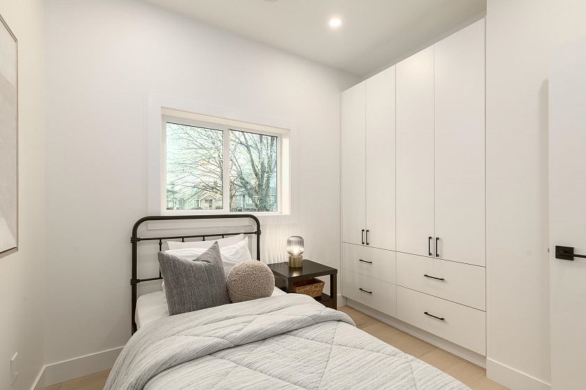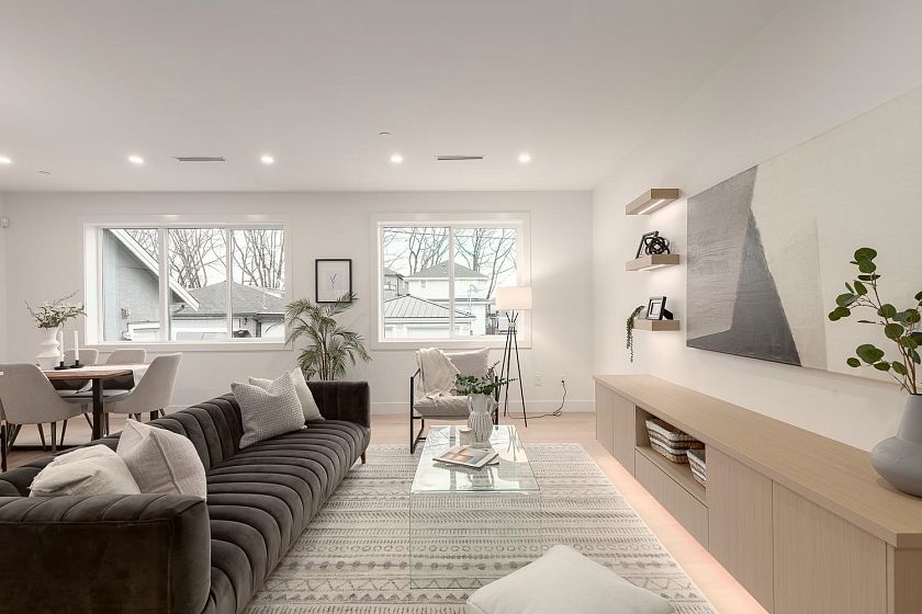 This rare TWO LEVEL 3-bedroom home at The Westline Collection delivers bright south facing living on a quiet tree lined street. The open main floor offers massive living and dining spaces, wide plank light oak engineered hardwood, and a Scandinavian inspired island kitchen with Fisher Paykel appliances, quartz counters and backsplash, under cabinet LED lighting, and custom millwork. All bedrooms sit on the 2nd level, ideal for families, with a primary suite that includes a generous walk in closet and ensuite finished with Italian and Spanish tile, Riobel matte black fixtures and quartz counters. Enjoy full size laundry, built in closet organizers, EV charger parking, and smart home features in a truly convenient location close to amenities, cafes (Breka!), restaurants, and transit.