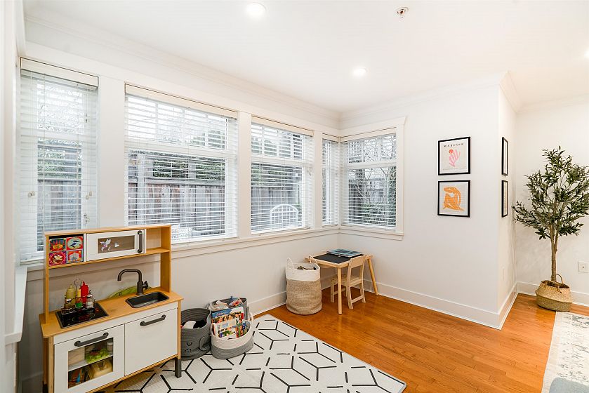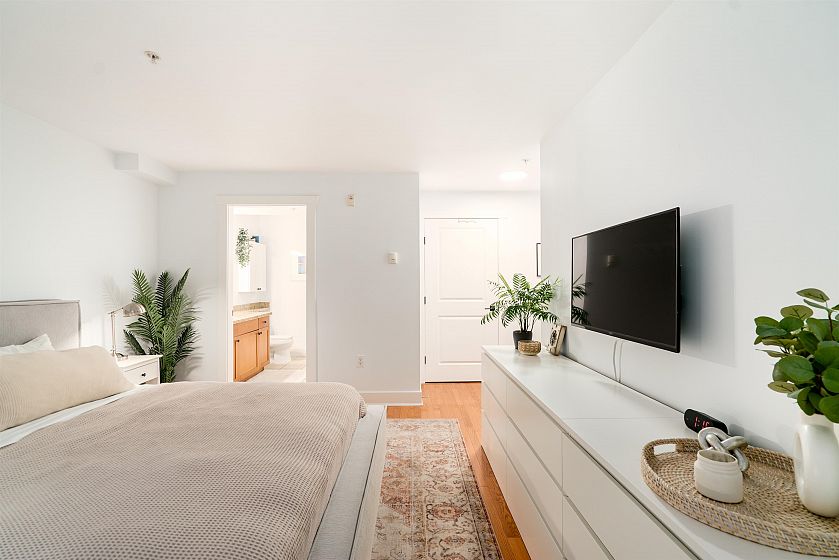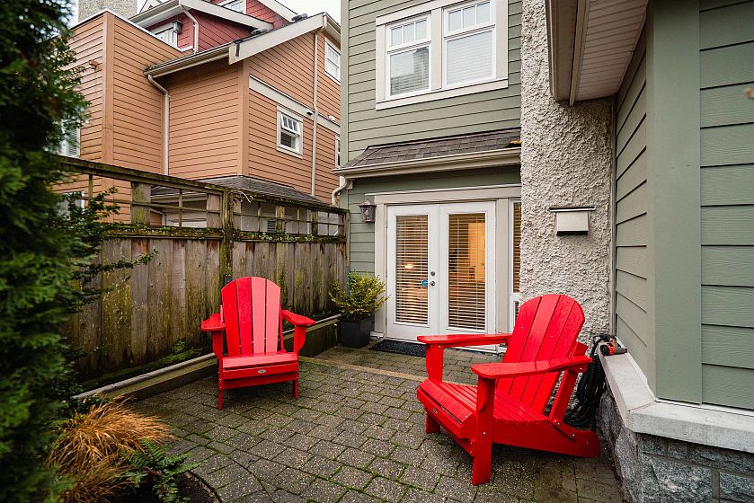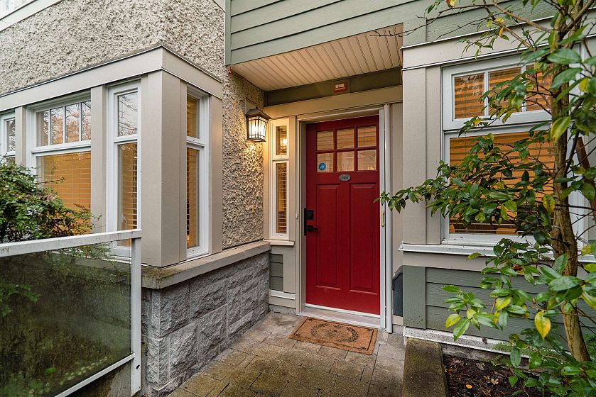 Rare single-level corner residence offering the feel of a rancher with expansive living on one level + situated in one of the top locations in the city. Open-concept kitchen with stainless steel appliances, gas range, granite countertops + loads of storage flows to living/dining with gas fireplace + private patio...perfect for entertaining + relaxing. Both bedrooms have full ensuites; the primary bedroom opens onto east-facing patio. Generously-sized den ideal for office, nursery or guest room. Spacious laundry with sink, hardwood floors, 2 secured parking stalls + massive 153 sq. ft. private storage room. Nestled in West Point Grey, steps to shops, parks, beaches, UBC + top schools. A perfect blend of privacy, space + convenience. Open Sat Dec 6th 2-4pm