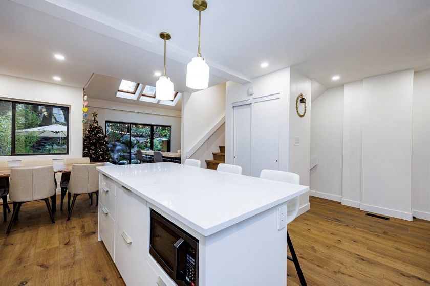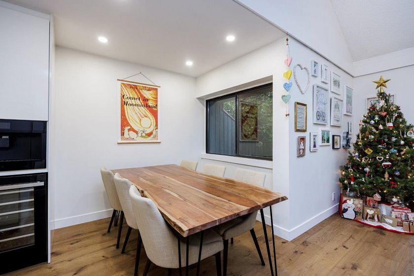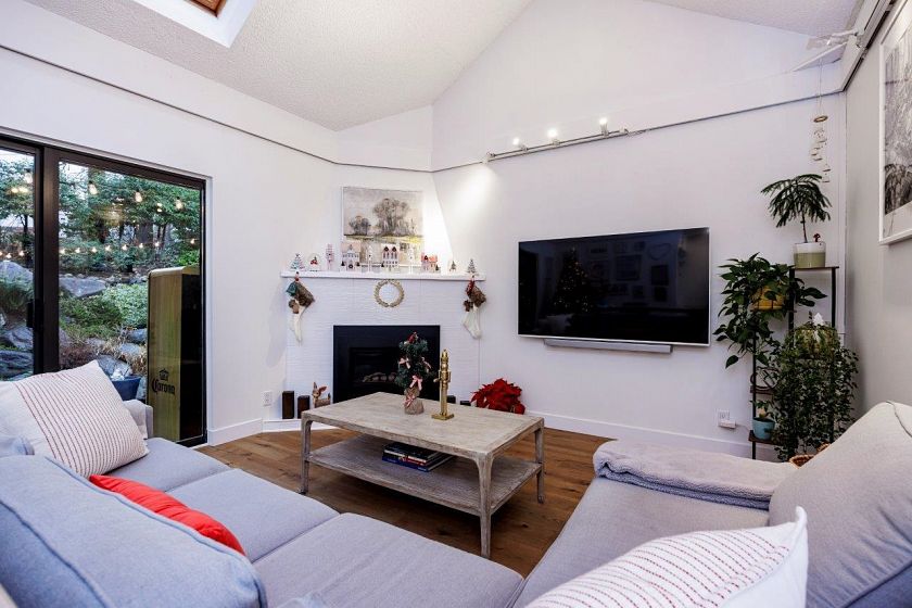 Welcome to the Maples- A well loved and friendly complex near Deep Cove/Dollarton! This Turnkey, 3 lvl townhome has been recently renovated and oozes quality and style throughout. The spacious kitchen is fabulous with quartz counters, gas range, very high end built in Jennair Cappuccino maker/wine fridge and overlooks the spacious dining and living room with gas fireplace, vaulted ceilings, skylights and sliders leading to the large private patio and rock garden. Reward yourself with spa like ambiance out back in your jacuzzi under a starlit sky! 3 bedrooms up with gorgeous ensuite. Downstairs features a family room, wine bar & workshop with additional storage. The complex has an outdoor saline pool and is surrounded by Seymour golf course. Close to all schools!