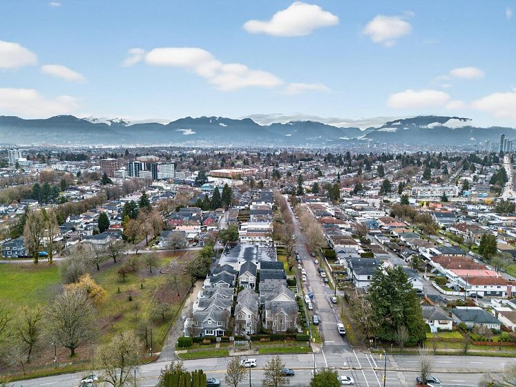 Duplex-like townhouse on Killarney Street: attached to only one other home, offering enhanced privacy. Finished in a sparkling white colour scheme, this home features a gourmet kitchen with a huge island counter—perfect for cooking and entertaining. Surrounded by beautiful greenery, it feels like a true urban oasis. Earles Park, with a baseball diamond and children’s playground, is right next door—just like having your own backyard. Enjoy easy access to transit and a low strata fee supported by efficient, prudent management. New outer paint and roof maintenance in 2025. The townhouse faces a quiet, landscaped courtyard.