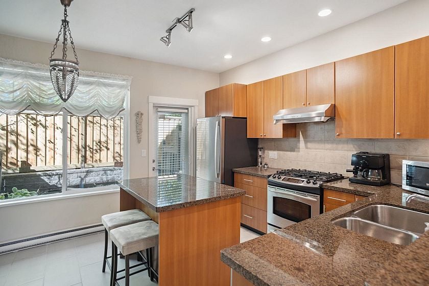 FIRST TIME ON MARKET - Welcome to LANGARA GREEN! This 1,389 SF 3 BED + DEN + 2.5 BATH townhome has been METICULOUSLY maintained by original owners. Open concept kitchen features S/S appliances, gas range, double undermount sinks & plenty of cabinetry & counterstop space for your cooking needs. Bright & spacious with a cozy fireplace to warm the living room. Private patio in the back perfect for BBQs & entertaining. Bedrooms are well-sized and can fit king beds! Den in the 2nd floor makes a fantastic home office. Primary bedroom features a walk-in-closet & large balcony with serene views. STEPS to OAKRIDGE mall, Marine Gateway Skytrain, T&T Supermarket, Cineplex, Langara College, Golf Course, Retail & Dining + more! 2 SIDExSIDE Parking + Locker.