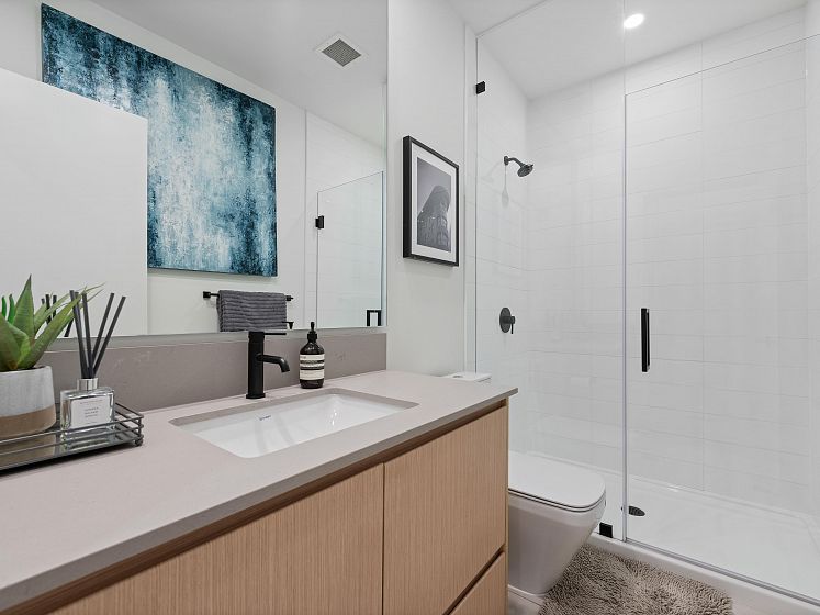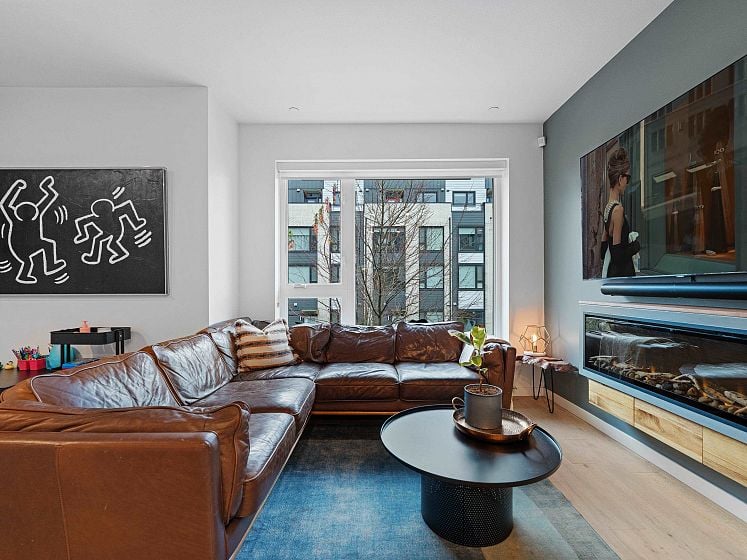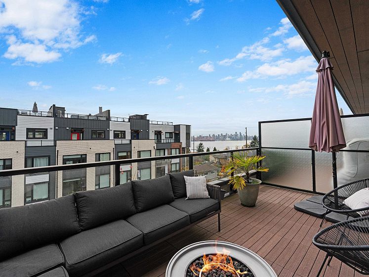 STUNNING city and ocean VIEWS in Moodyville! Founders Block South by Anthem: a QUALITY, LEED-certified build offering 4 spacious bedrooms, den, 3 FULL baths, 3 outdoor spaces to enjoy -- including an over 300 sq ft private patio with natural gas -- and oversized 18’ wide south-west facing deck off the primary to take in the views. Scandinavian-modern inspired interior design with in-floor radiant heat throughout and HRV system. Convenient direct access to covered parking in the garage, upgraded with private Level 2 EV charger and built-ins by STOR-X in mudroom. Added bonuses: large storage locker and well-run strata. Stroll 5-mins to Moodyville Park, or 15-mins by foot to the Shipyards, Seabus and everything in between, including Lolo’s vibrant shops, restaurants and breweries.