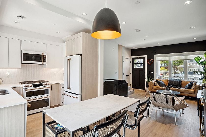 Stylish, well-appointed townhome in the heart of East Van, just off Nanaimo & 34th. This 3 bed + flex home is part of the beautifully restored Century House collection, blending modern comfort with heritage charm. Family-friendly layout features a full basement media room + versatile flex space ideal for office, gym, or studio. Top-floor primary retreat offers vaulted ceilings, double vanity ensuite & private balcony w/ city & mountain views. Two additional beds provide flexibility for kids, guests or WFH. Street-level access, ample street parking & walkable location near Cunningham Elem, parks, T&T & transit.***Open House Sun, 12-2pm***
