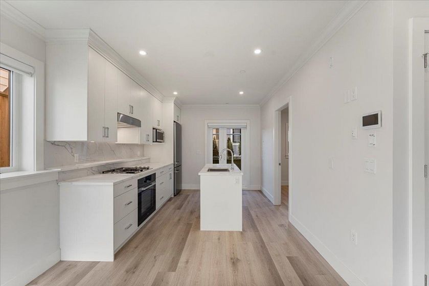 This beautiful brand new 2 bedroom, 3 bathroom unit is one of four units. This unit is unique as it is the only 1 level living unit in this project. With a larger "family room" with its own bathroom and door, this room can be turned into another bedroom or office. You will be located in the amazing Kitsilano neighbourhood, tucked away in a quiet area but not too far away from all the amazing shops, eateries and Kitsilano Beach! If you want to be settled in a quiet area but still be close enough to all the buzz, this is the perfect location to be in. Kitchen is fully open concept with stunning white cabinets, quartz countertops, stainless steel appliances and gas cook top.