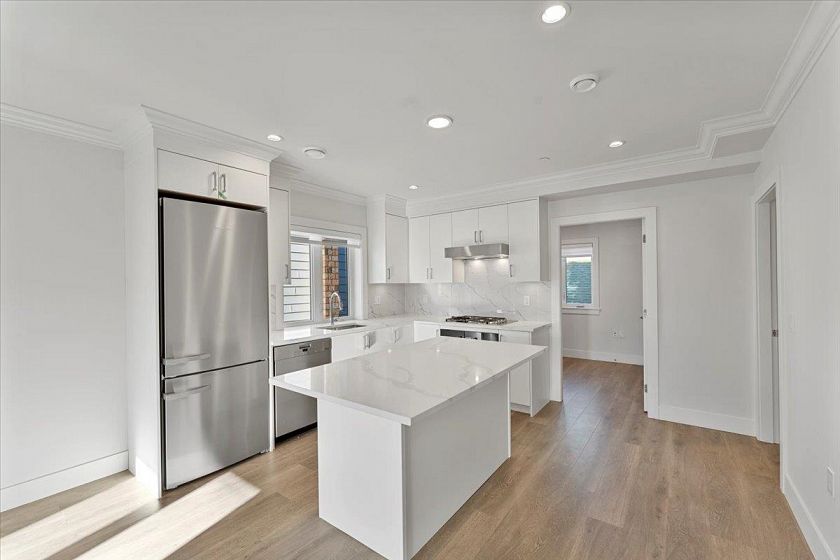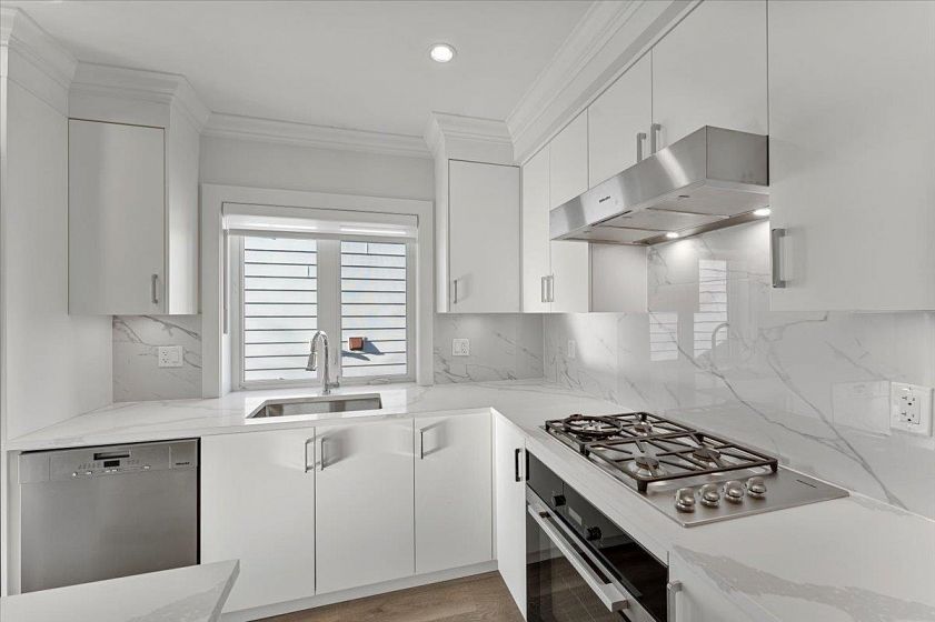 This beautiful brand new 3 bedroom, 2 bathroom unit is one of the four. Located in the amazing Kitsilano neighbourhood, tucked away in a quiet area but not too far away from all the amazing shops, eateries and of course, Kitsilano Beach! If you want to be settled in a quiet area but still be close enough to all the buzz, this is the perfect location to be in. Lovely private primary bedroom as it is located on the upper floor with its own walk-in closet, ensuite and balcony space. Other 2 bedrooms are located on the main floor with the kitchen and livingroom. The Kitchen is fully open concept with stunning white cabinets, quartz countertops, stainless steel appliances and gas cook top.