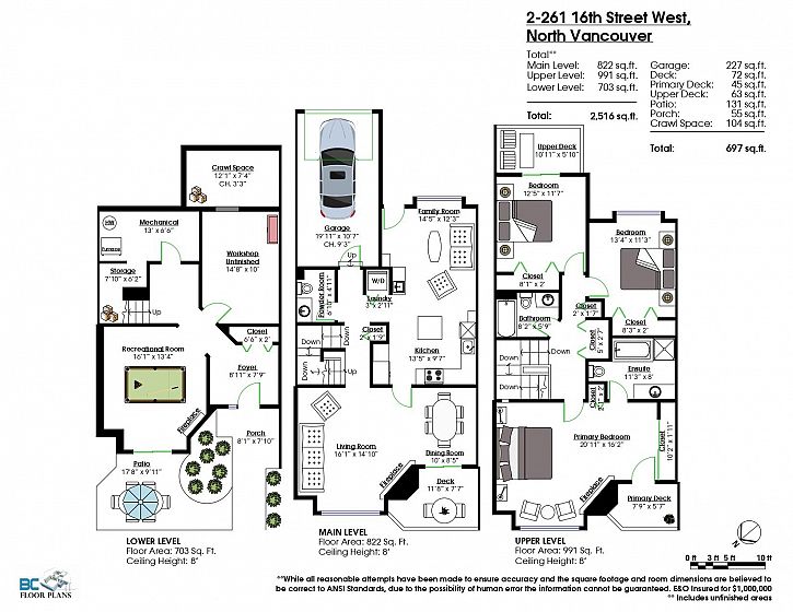 The space of a house and a bright west side location just steps to parks, easy transportation and the many restaurants/amenities of Central Lonsdale. This 2,516 sq ft, 3 level 5 plex residence was quality built by Noort Homes. The layout feats 3 bedrooms up including an oversize master suite with 1 of 3 gas f/p's. There's a family room off the house size kitchen with island, beautiful living and dining with custom wood shutters and direct access into the single garage (plus an open space as well). Rec room and workshop downstairs with access to loads of storage in the crawl space. There are 3 deck areas plus a large front patio overlooking the private garden setting. Indoor cat(s) may be an exception to the no pet rule. THIS IS NO LONGER AN AGE RESTRICTED BUILDING. Easy to show.