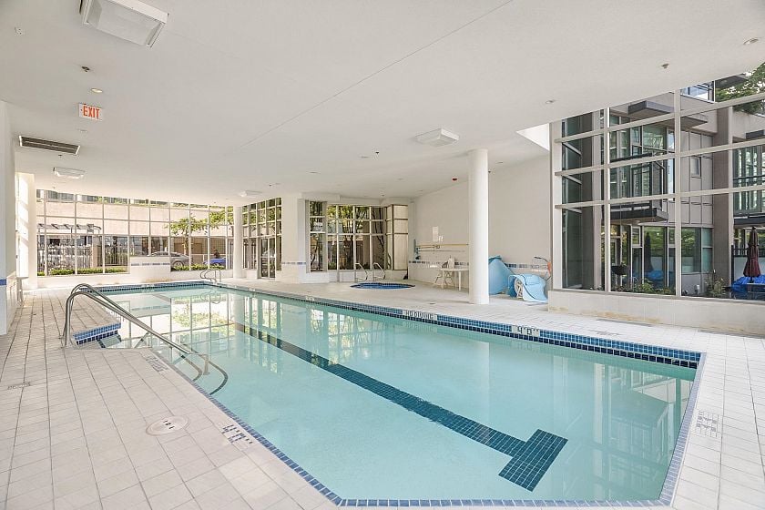 Discover elevated living at Classico in this oversized 1 Bed + 2 Bath loft-style townhouse, offering impressive scale and modern elegance across two thoughtfully designed levels. Contemporary finishes enhance an airy open-concept layout, highlighted by soaring 17-ft ceilings and an abundance of natural light throughout. The main level features a versatile den ideal for a home office, while the upper level offers a spacious flex area perfect for a lounge or workspace. Enjoy seamless walk-out living to a generous, sun-filled gated terrace on a quiet tree-lined street. Complete with 1 parking stall + 1 storage locker, amazing same-floor amenities including fitness facilities and a pool. Perfectly situated in the heart of Coal Harbour, just steps to the seawall, parks, shopping & restaurants.